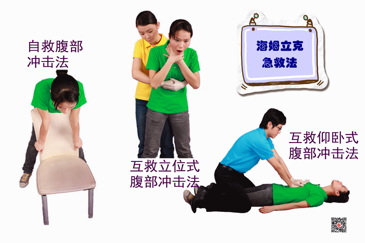 1、自救腹部冲击法:适用于成人