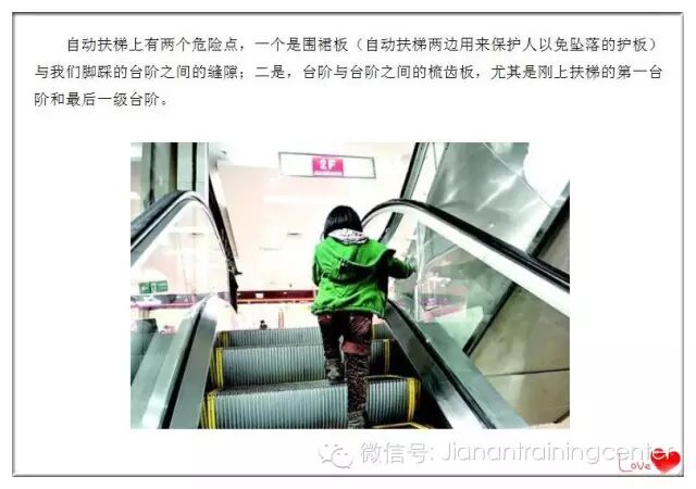 3.坚决要求孩子乘梯时脸部向前,让他们熟悉如何上下扶梯。由于手扶电梯一直在运行,稍有犹豫,哪怕短短几秒,都可能导致危险发生。