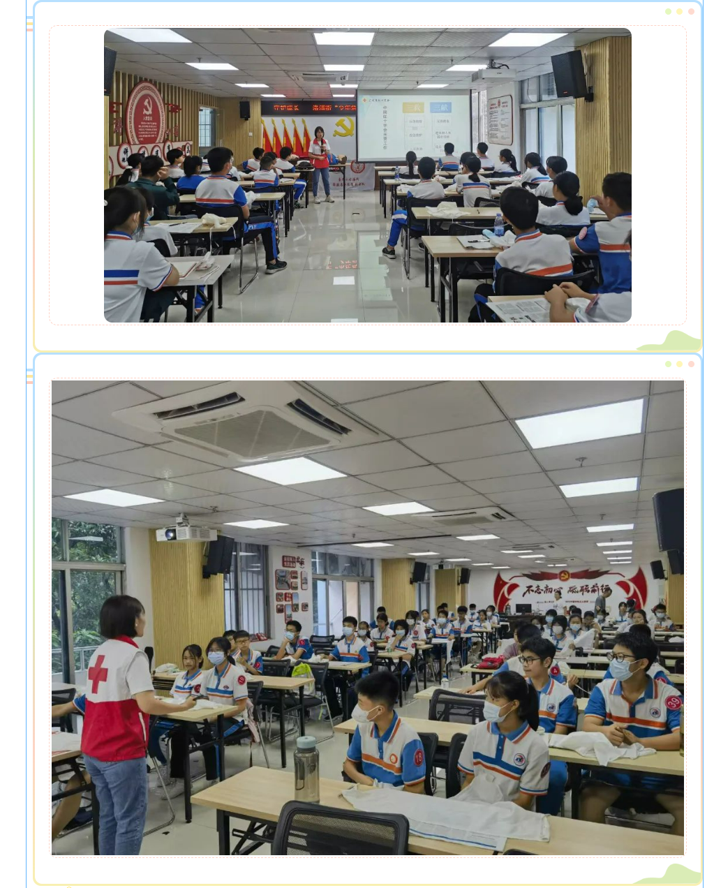 活动前半部分,经验丰富的导师用丰富的肢体语言和通俗易懂的语言,结合经典急救案例及校园内学生可能出现的突发状况,讲解应急救护“黄金四分钟”、心肺复苏的重要性、操作流程、心肺复苏标准和AED操作步骤及使用注意事项等,为青少年上了一堂别开生面的急救课。