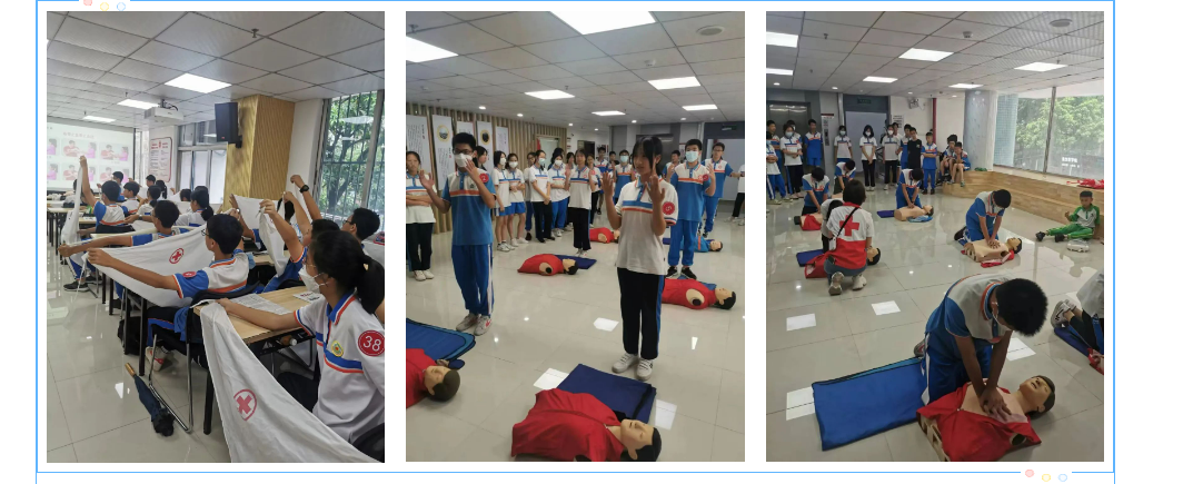 来自仲元中学附属学校的龙锦耀同学在人体模型上尝试急救动作,还将老师讲解的注意事项一一记在了心里。他说:“以前以为这个心肺复苏就是铆足劲用力按就行,原来每个动作和步骤都有大学问,虽然我们还小,但是这些生活中的常用救护知识总有一天可以帮到他人,就像新闻看到发生意外时挺身而出的‘急救侠’一样。”