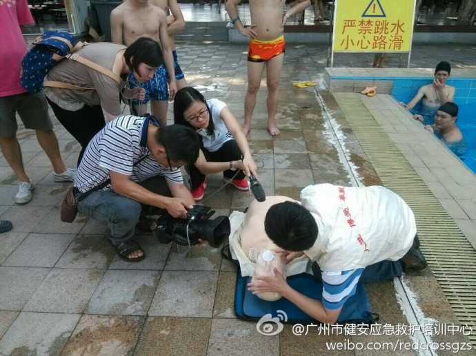 针对夏季小孩溺亡事情频繁发生,广州电视台邀请广州市红十字应急救护培训中心于7月22日下午在西郊泳场拍摄溺水施救知识讲解,为了您的孩子安全,增长孩子溺水救护知识,请关注22日晚7点-8点的广州G4新闻日日睇。