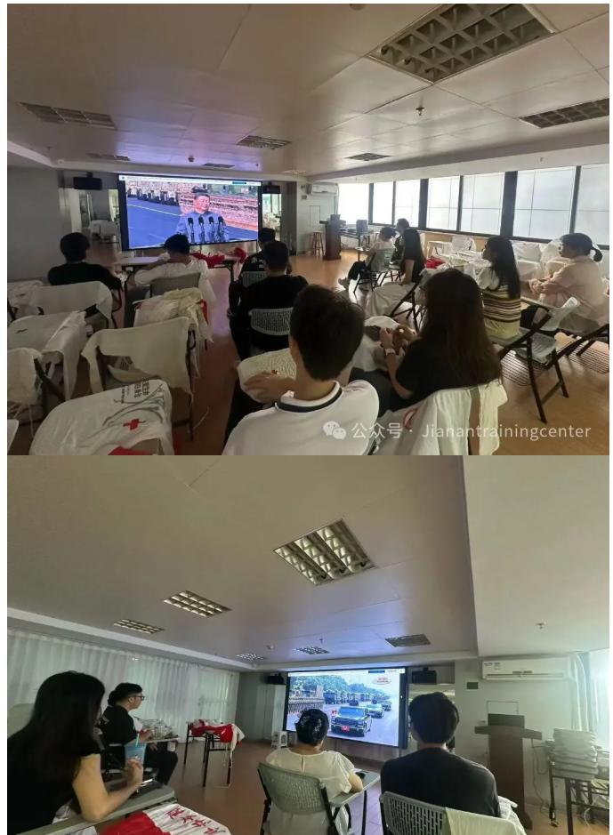 2025 年 9 月 3 日,纪念中国人民抗日战争暨世界反法西斯战争胜利 80 周年大会在北京隆重举行。广州市健安应急救护培训中心组织全体工作人员集中收看了大会直播,共同回顾那段波澜壮阔的抗战历史,缅怀先烈的丰功伟绩,汲取前进的精神力量。
