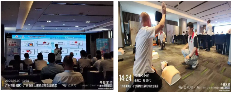 本次活动聚焦酒店行业应急能力建设,面向酒店管理团队及一线员工开展针对性培训。广州市红十字会派出资深救护师资团队,通过“理论讲解+实操演练”相结合的方式,系统讲授了心肺复苏(CPR)操作流程、自动体外除颤器(AED)使用方法、气道异物梗阻解除术等关键急救技能。
