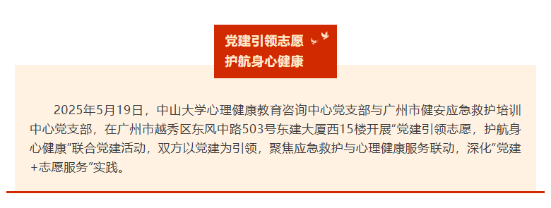 此次共建是“党建与业务融合”的成功实践,未来将持续以党建为纽带,凝聚志愿力量,在应急救护普及、心理健康科普等领域深化合作,将“红色动能”转化为守护群众生命健康的实际行动。