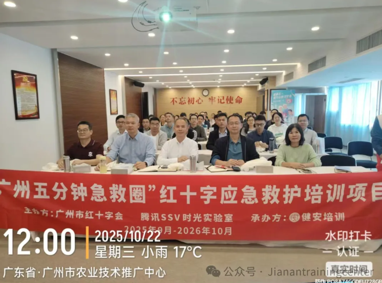 2025年10月21日,由广州市红十字会、腾讯SSV部门主办的2025“广州五分钟急救圈”项目在广州市农业技术推广中心成功举办。此次培训得到了中心领导班子的高度重视,中心党支部书记王运友同志率先垂范,与全体职工一同积极投入学习。