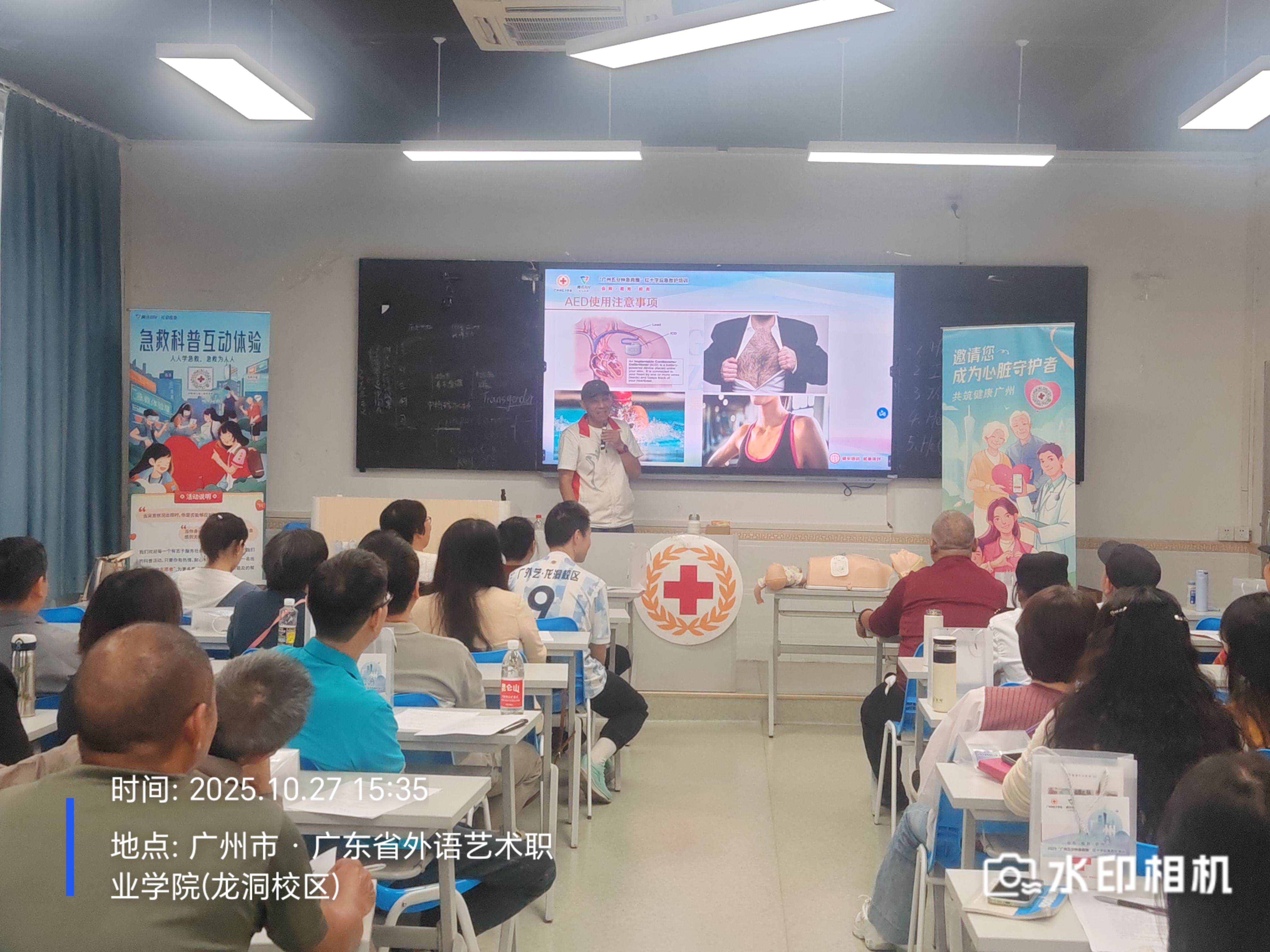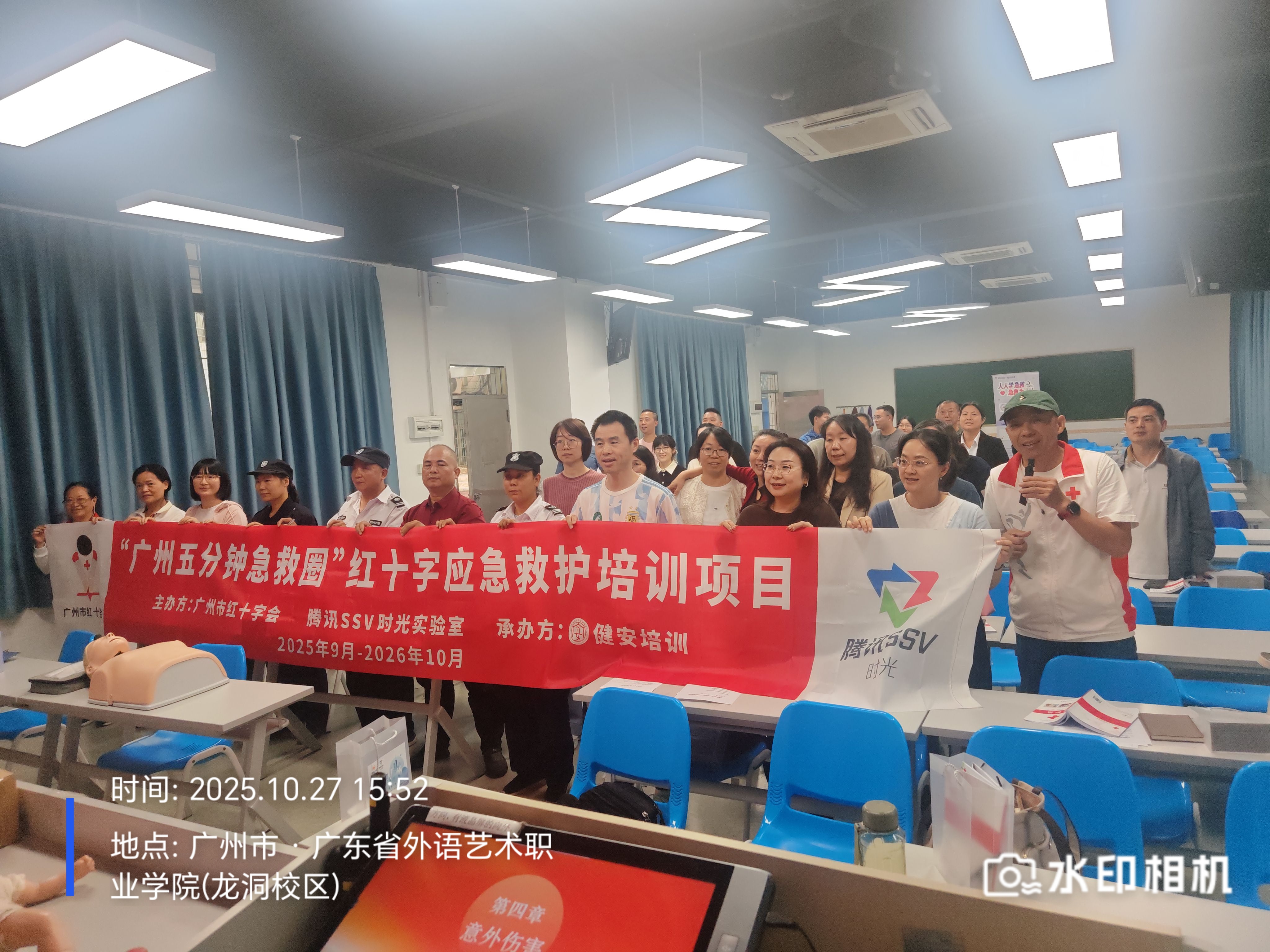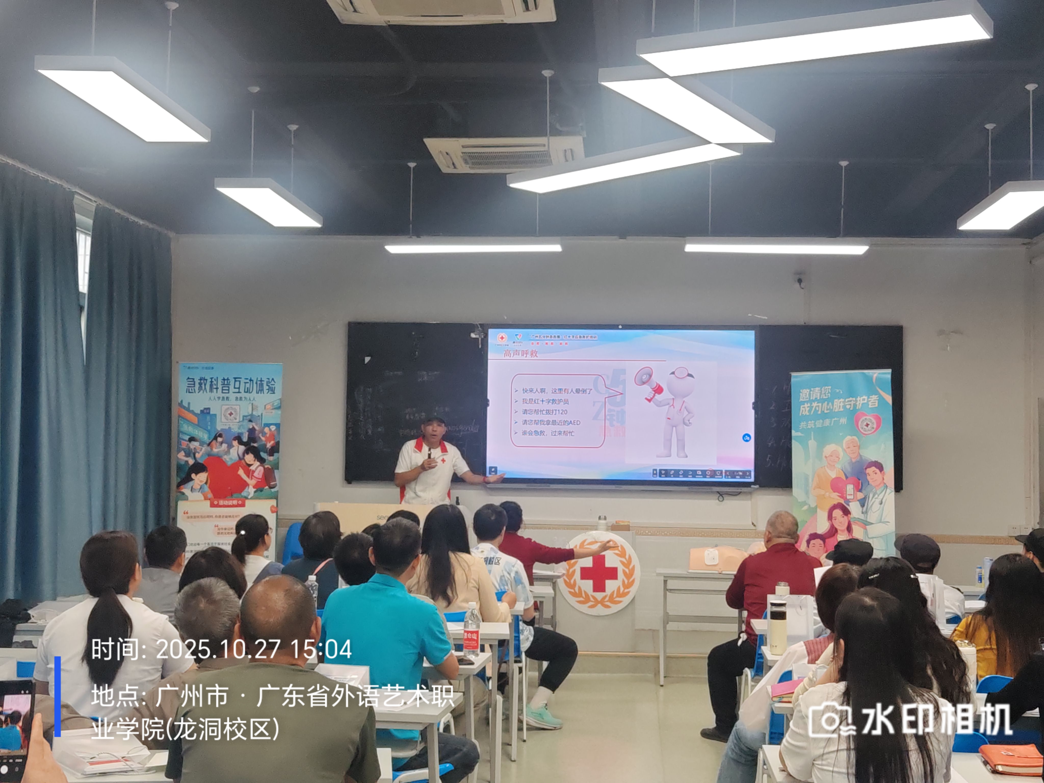 2025年10月27日,为普及应急救护知识,提升校园应对突发事件的能力,由广州市红十字会与腾讯(SSV)联合主办、健安应急救护培训中心承办的2025年度“广州五分钟急救圈”项目第92场红十字CPR/AED专项培训,在广东省外语艺术职业学院海珠院区成功举办。本次培训深度贴合校园场景实际需求,内容专业实用,获得了参训教职工的一致好评。