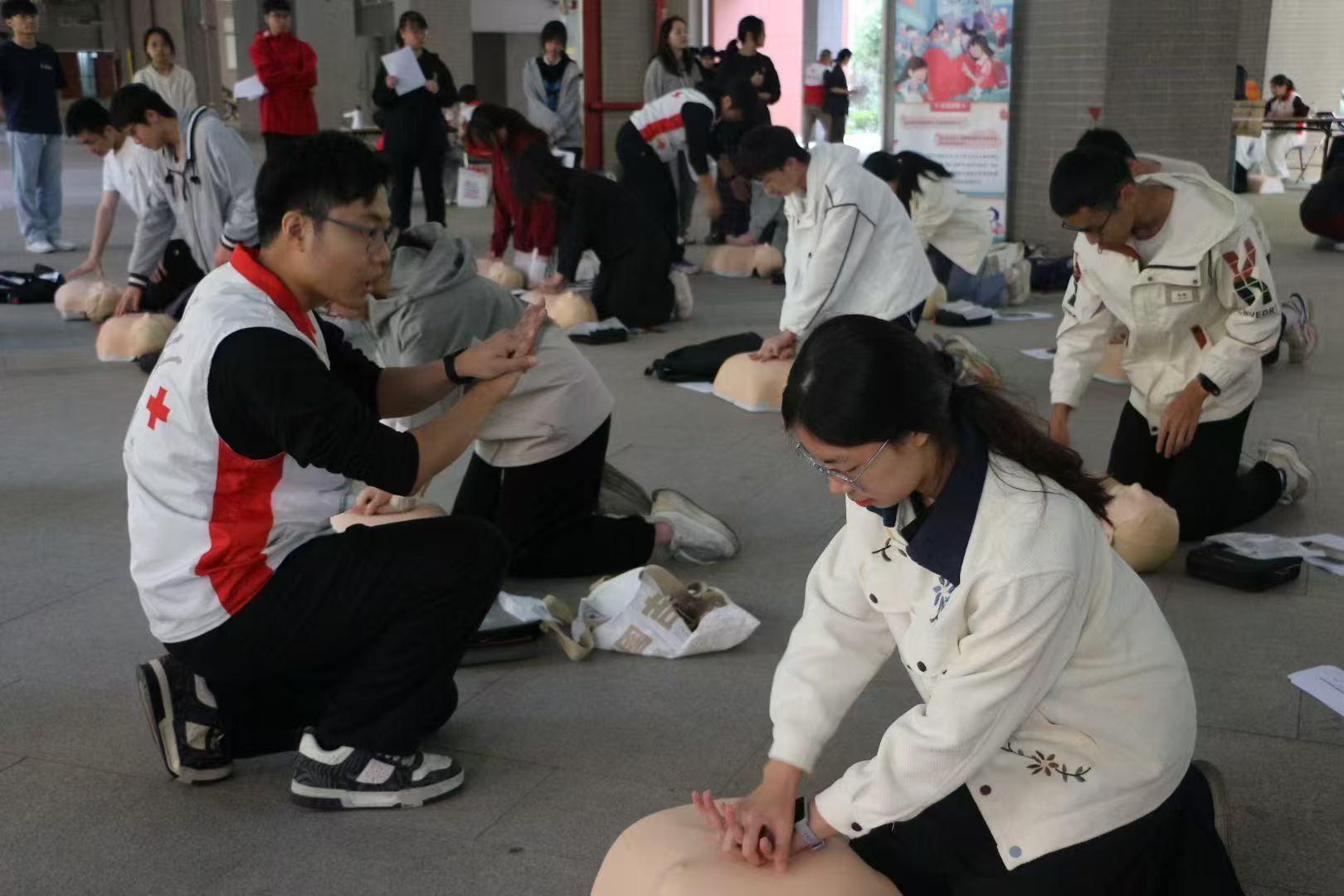 参训的医学生志愿者充分展现出扎实的专业素养与饱满的学习热情。在理论教学环节,学员们结合自身医学专业知识,围绕赛道急救特殊场景处置、多岗位协同配合模式等关键问题展开深入探讨,提出诸多具有实操价值的见解,彰显了准医疗工作者的专业思考与责任担当。实操训练阶段,学员们分组开展实训,在模拟赛道路况环境中反复演练胸外按压、人工呼吸与 AED 操作的协同配合,重点强化了拥挤环境下快速施救、高效建立急救动线等实战技能。学员们训练态度严谨、刻苦钻研,通过多轮次、高强度的针对性练习,将理论知识熟练转化为规范的操作技能与可靠的肌肉记忆。