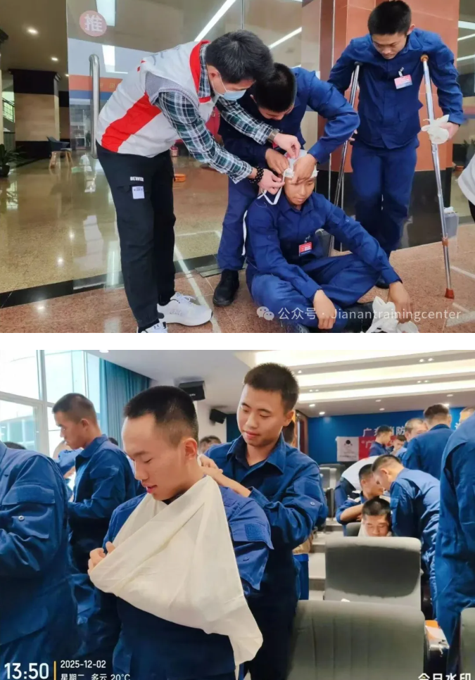 当日,一场聚焦“实训为王”的线下培训火热开展。授课老师化身“技能教练”,将课堂直接转化为“救援现场”:从交通事故模拟区的“黄金四分钟”心肺复苏实操,到建筑坍塌场景下“止血—包扎—固定—搬运”的连贯处置演练,从高温灼伤急救技巧讲解到群体伤检伤分类实操,每个环节均精准还原消防实战中最可能遭遇的危急情境。学员们身着作训服,或跪地专注练习胸外按压,或俯身协作固定骨折部位,即便额头沁满汗珠,眼神依旧坚定专注——这场沉浸式训练,成功将“纸上知识”真正转化为“肌肉记忆”。即便那位拄着拐杖的学员,也在助教的全程协助下全身心投入,反复观摩关键动作、模拟操作流程,力求将每一个急救细节刻进心里。