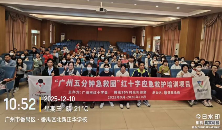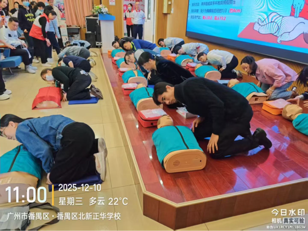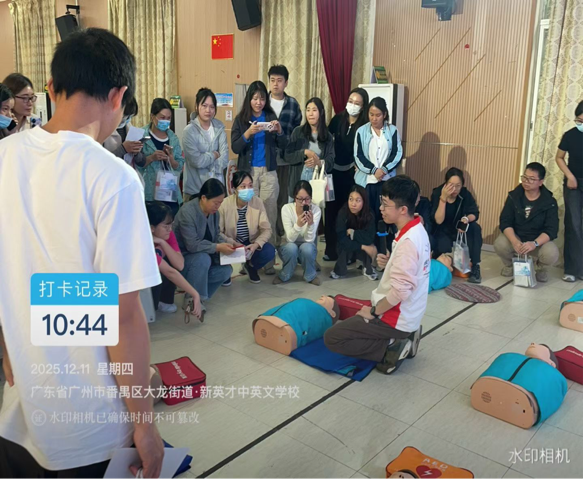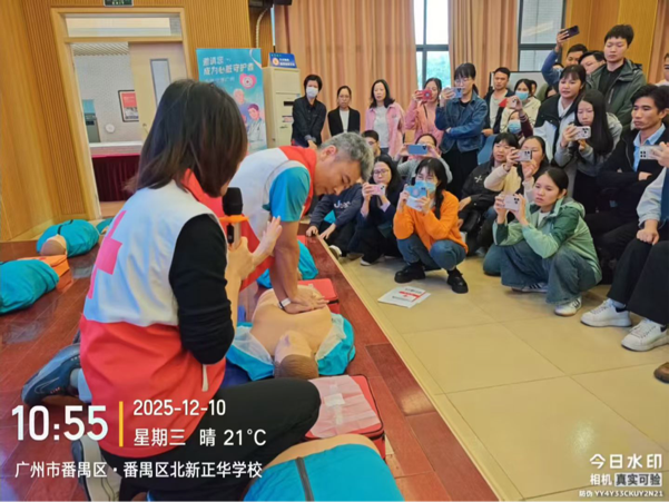 12月9日至12日,2025年“广州五分钟急救圈”项目红十字CPR+AED取证课程,先后在广州市北新正华学校、广州市番禺区新英才中英文学校开讲。本次培训共开展7场课程,为677名教师及教职员工量身打造急救“必修课”,百名师资顺利通过考核持证上岗,进一步筑牢校园安全防线。