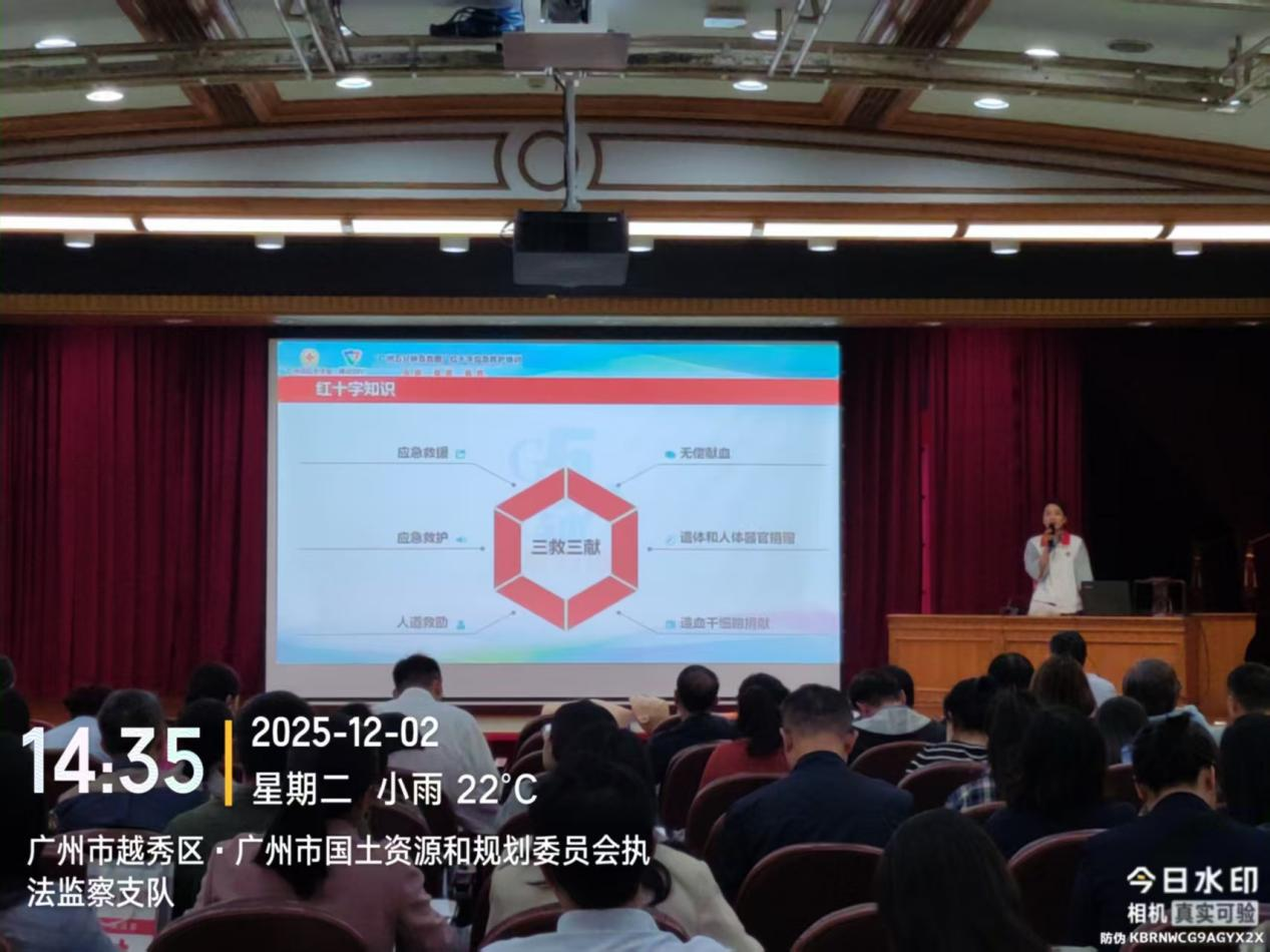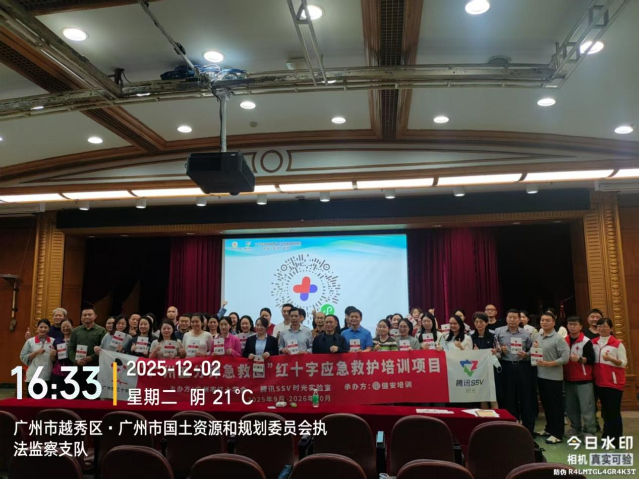 为提升公共管理服务部门应急救护能力,彰显公共服务单位社会责任担当,广州市土地开发中心于2025年12月2日下午,由广州市红十字会、腾讯 SSV 部门联合主办的 2025 “广州五分钟急救圈” 项目红十字CPR+AED专项救护员培训班成功举办。来自中心各岗位的50名干部职工圆满完成为期4学时的系统培训,全员顺利通过考核。
