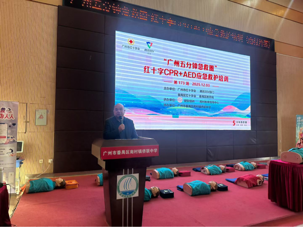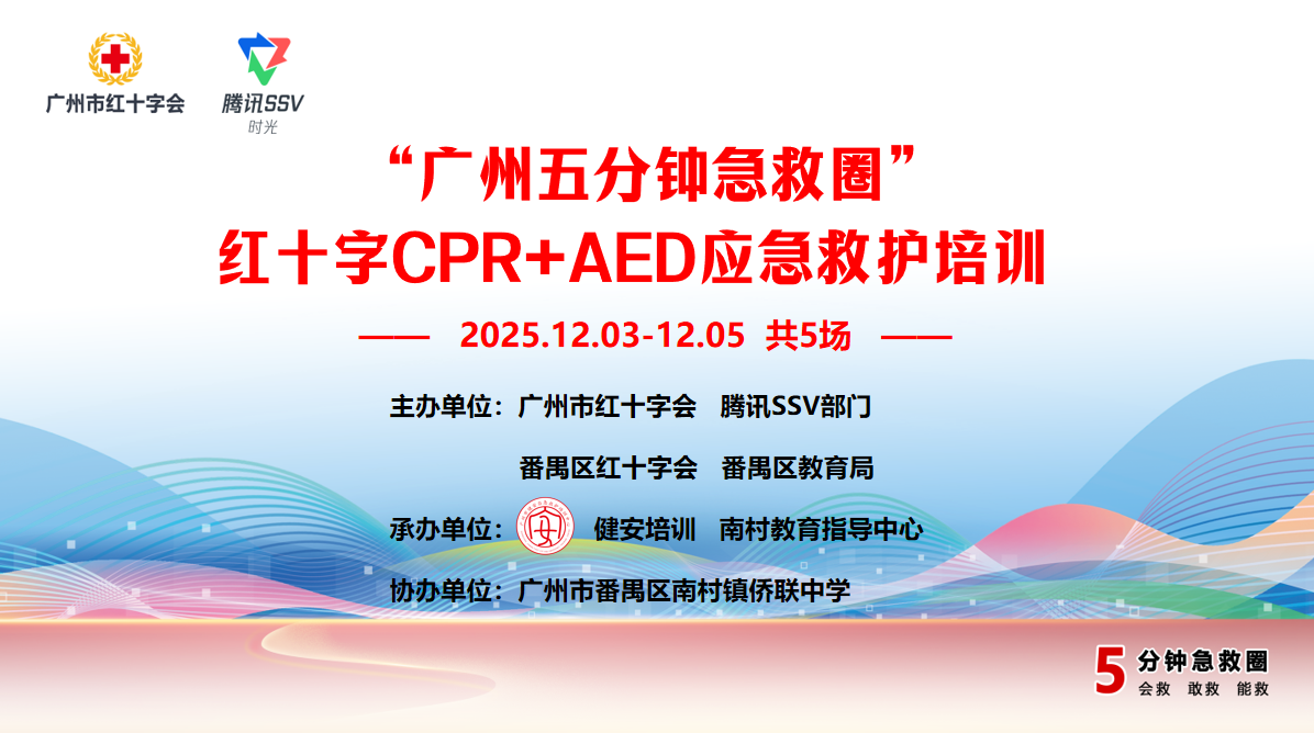 校园是人员高度密集场所,师生生命安全牵动千家万户。12月3日至5日,由广州市红十字会、腾讯SSV部门联合主办的2025“广州五分钟急救圈”项目,在广州市番禺区南村镇侨联中学连续开展5场CPR+AED急救培训,为南村教育指导中心481名教育工作者系统传授专业急救知识与技能,全面提升校园应急救护能力。