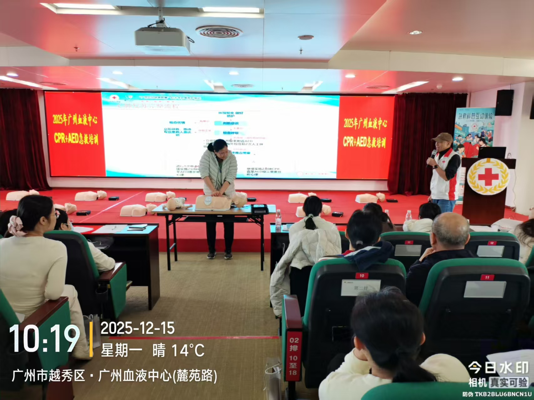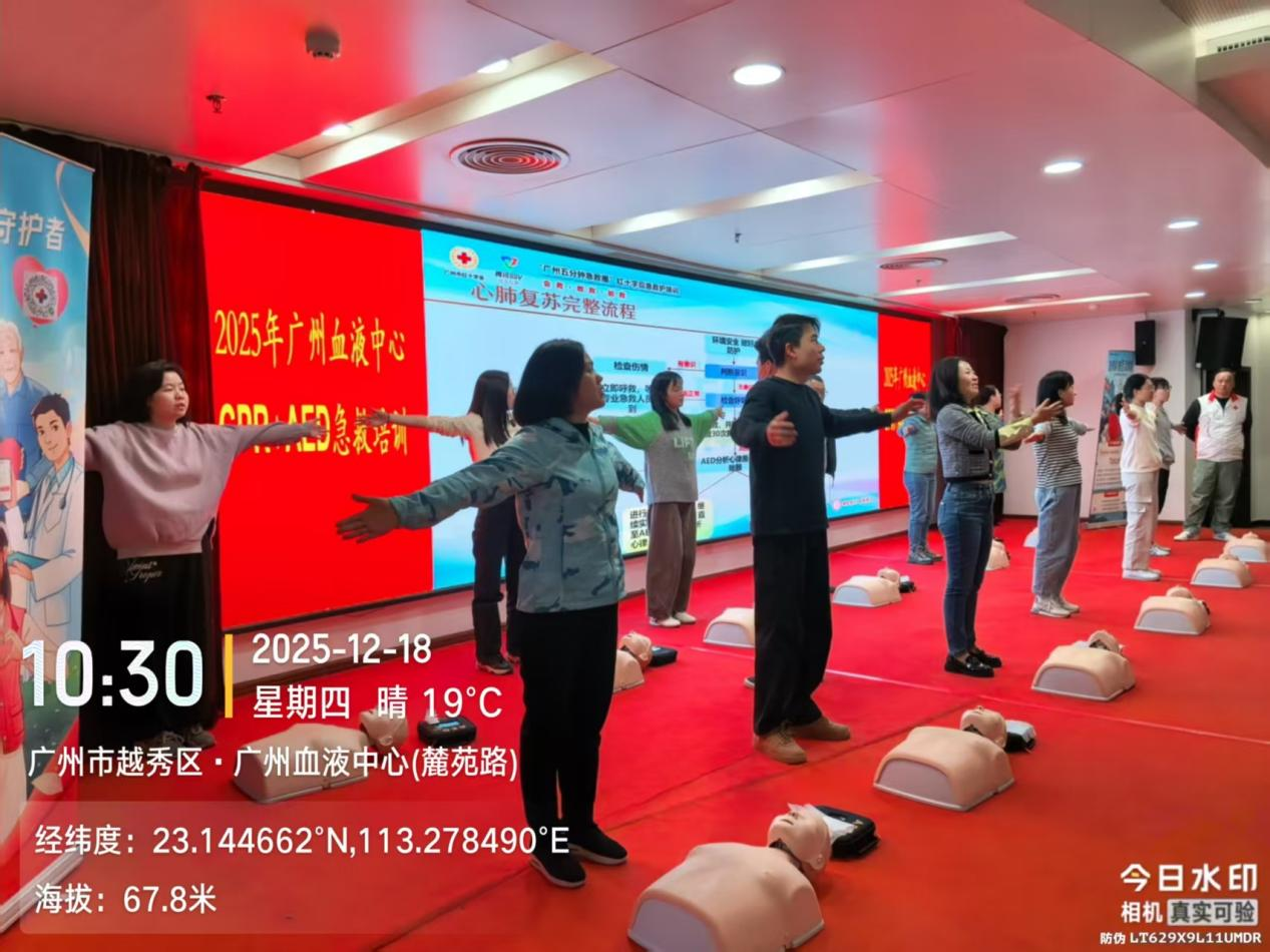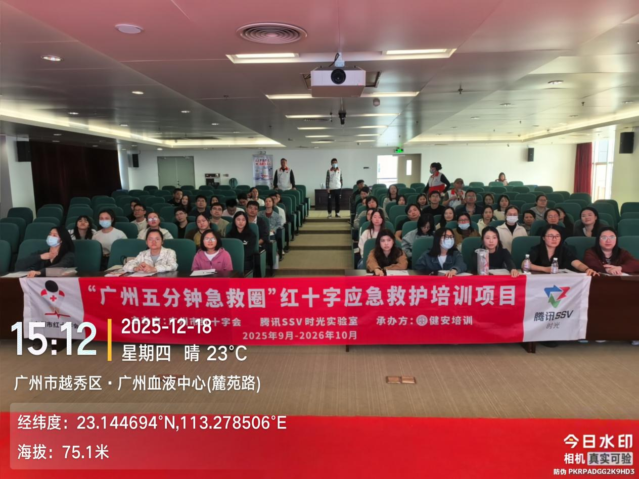为强化血液中心工作人员的应急救护能力,保障采供血工作安全有序开展,12月15日至18日,由广州市红十字会、腾讯SSV部门联合主办的2025“广州五分钟急救圈”项目,走进广州血液中心,开展了为期四天的CPR+AED专项培训。培训以“高密度、高效率”为特点,累计开展8场课程,为373名一线采血人员、后勤保障人员及行政管理人员系统赋能,为采供血工作增添安全保障。