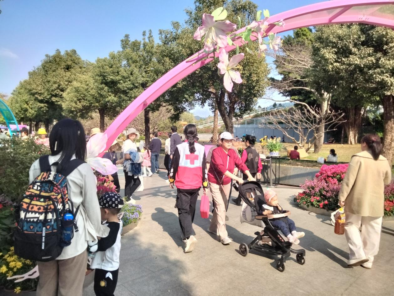新春年味浓,花市乐融融!2026年春节期间,广州儿童花市于广州市儿童公园热闹启幕,千年花韵邂逅童趣新春,成为亲子逛花街、享年俗的热门打卡地。为了让孩子们在缤纷花市中快乐游玩、安心过节,广东省红十字会应急救护志愿服务二队携手广州市儿童公园开启新春安全守护行动,将急救宣教与安全保障融入花市时光,用一抹亮眼的“志愿红”为新春花市筑牢安全防线,让平安成为这个春节最暖心的底色。