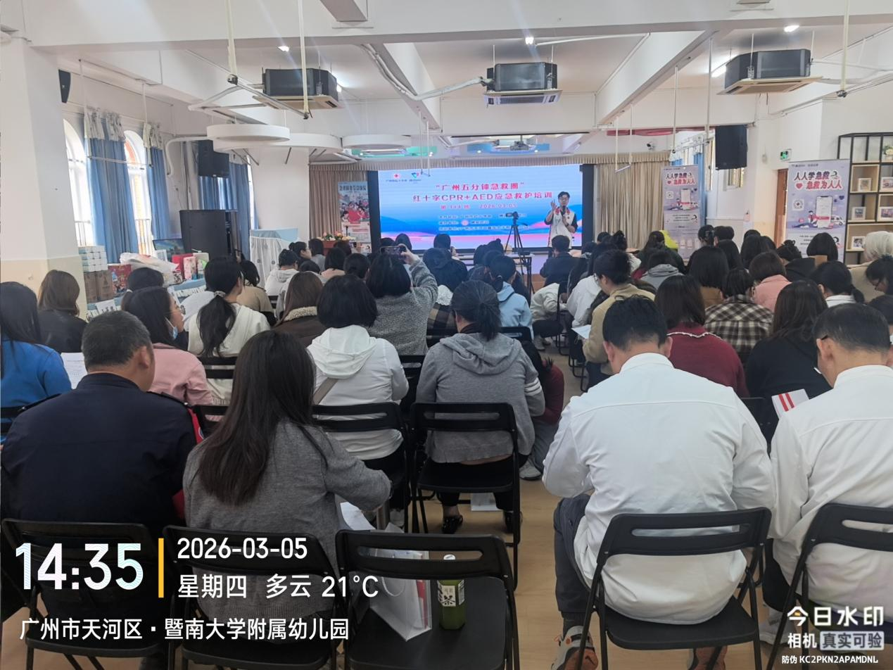 下午,健安培训与暨南大学幼儿园80多名教职工齐聚一堂,参加红十字CPR与AED技能培训。课堂上,讲师神情专注,讲解条理清晰,从心脏骤停的判断到胸外按压的频率与深度,再到人工呼吸的要领与AED的正确使用方法,一步步拆解、示范,力求让每位学员听得懂、学得会。学员们有的低头伏案,认真记录每一个关键步骤;有的目光紧随老师的手势,生怕错过细节;还有的边听边思考,不时举手提问,与老师探讨实际工作中可能遇到的急救情境。模拟人旁,大家轮流练习,掌心贴紧模型胸口,呼吸与按压配合默契,汗珠顺着脸颊滑落,却不减学习的劲头。整个教室洋溢着浓厚的学习氛围,仿佛一场关乎生命的接力赛正在进行。最终,全体学员一次性通过理论与实操考核,顺利领取红十字救护证。一位老师感慨:“这不仅是一张证书,更是一份守护孩子的信心与力量。”