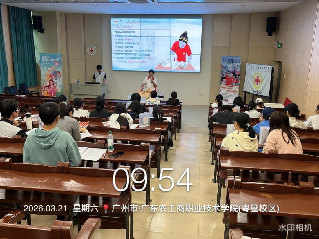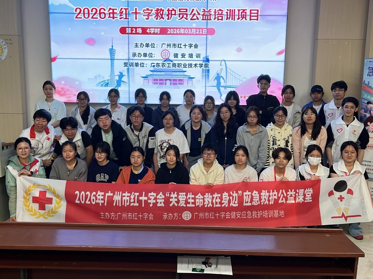 当意外突如其来,专业的急救技能,就是守护生命最坚实的力量。由中国福利彩票公益金资助,广州市红十字会主办的2026年红十字救护员公益培训项目第2期,于3月21日周六暖心开讲,广东农工商职业技术学院26名师生参与本次4学时专业培训,借着公益东风,把救命技能牢牢记在心中,为校园平安筑起坚实防线。