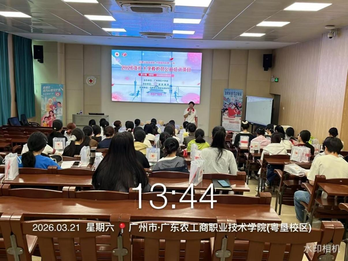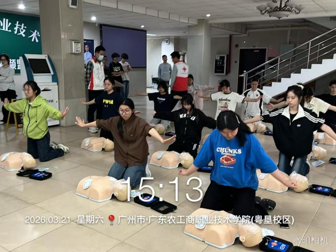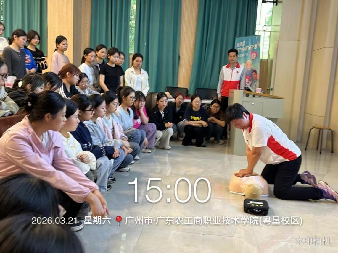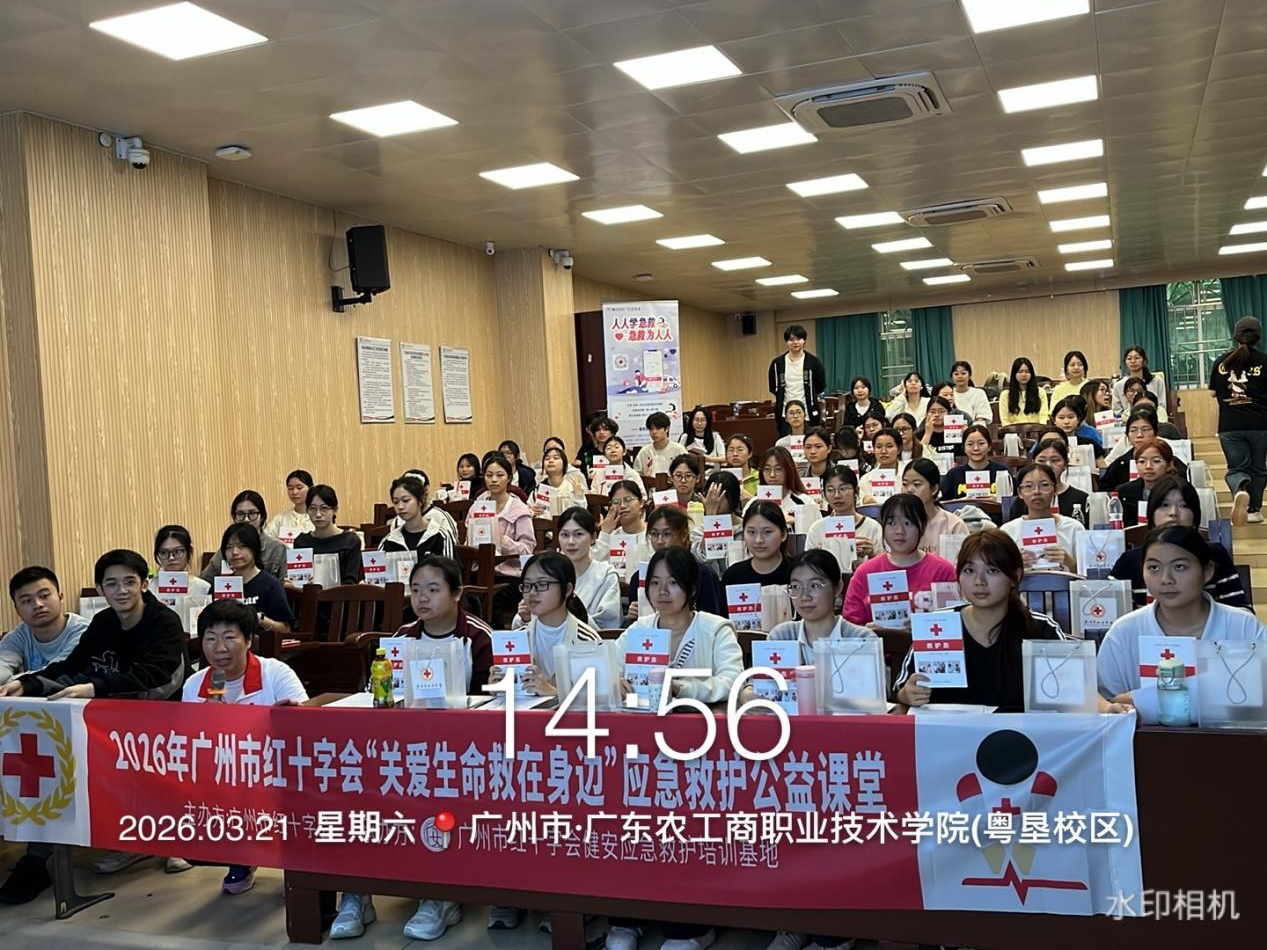 当青春校园里突发意外,专业急救就是与生命赛跑的“超能力”。由中国福利彩票公益金资助,广州市红十字会主办的2026年红十字救护员公益培训项目,3月21日在广东农工商职业技术学院迎来第三场4学时培训,57名师生利用周末下午的时间,系统学习心肺复苏与AED使用技能,用公益力量为校园安全筑牢双重防线。
