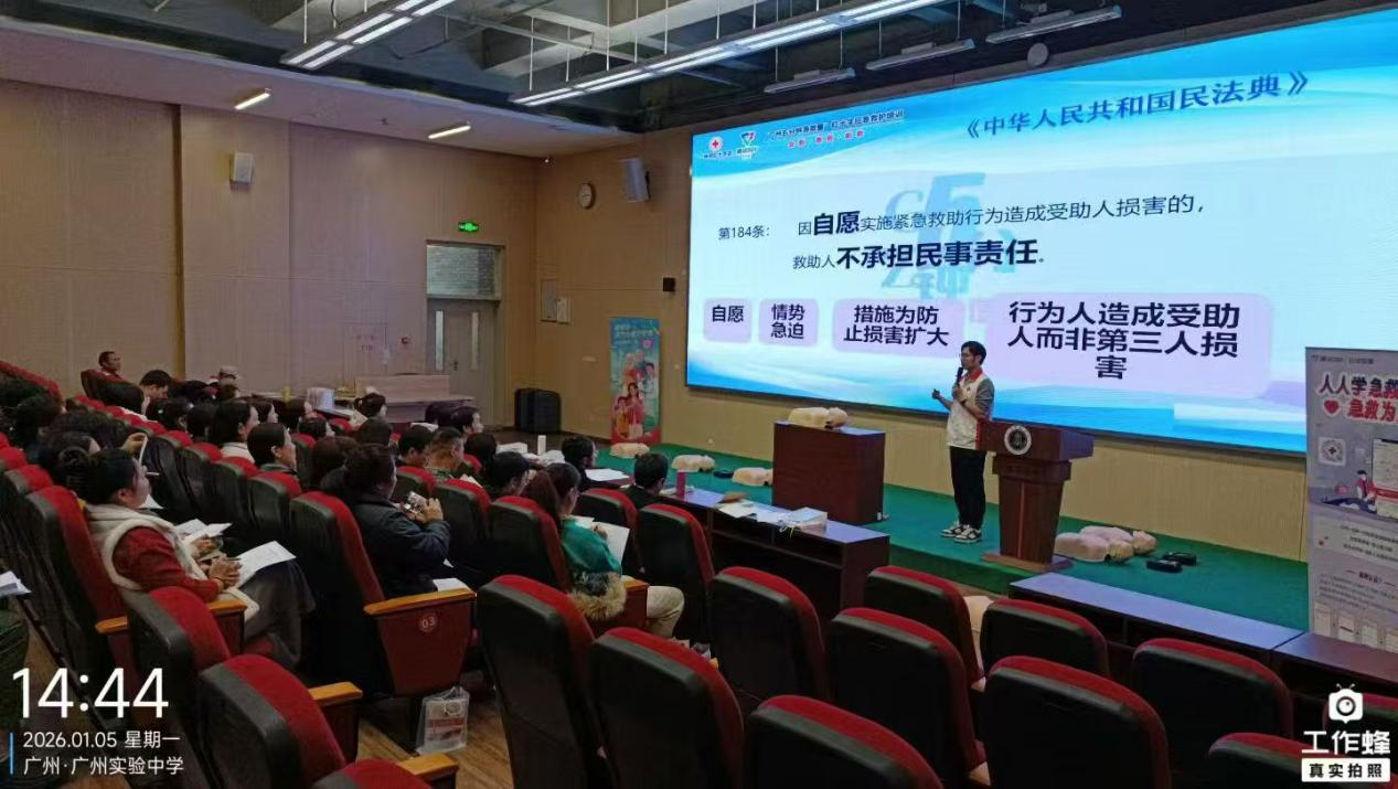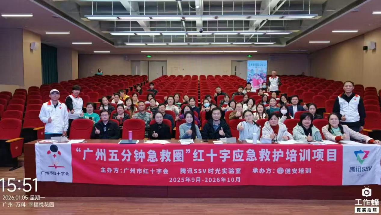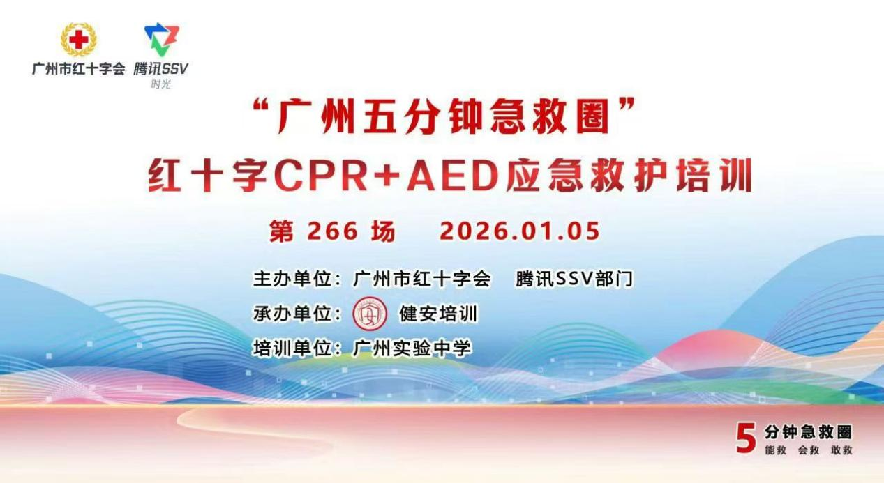 中学阶段青春活力、运动丰富、活动密集,校园应急保障直接关系学生健康成长。教师作为学生在校期间最亲近的守护者,掌握专业急救技能至关重要。1月5日,由广州市红十字会、腾讯 SSV 部门主办的 “广州五分钟急救圈” 项目走进广州实验中学,由广州市红十字会、腾讯SSV联合主办,为46名一线教师开展系统化CPR+AED急救培训,以“师者先行、守护青春”为理念,全面筑牢校园安全坚固防线。