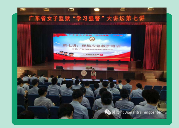 为提升广东省女子监狱干警的安全意识和责任意识,贯彻落实“防风险保平安 迎大庆”部署要求,做70周年大庆期间的安全维稳工作及应急处置工作,宣传普及健康知识和救护技能,健安培训(省红十字会应急救护服务队)在9月9日到广东省女子监狱开展应急救护培训,有60多名干警参加培训。培训期间,老师阐述了应急救护的重要性,并使用课件图文并茂的讲解了“黄金四分钟”的重要意义、心肺复苏的操作条件、步骤及要点,并有针对性的讲解了监狱易发伤害的急救处理,避免救护不当引起“再损伤”,老师讲解及演示完毕后,干警逐一反复行练习,学习热情高涨。本次活动,不仅是把健康中国行动落实到应急救护培训工作中的有力举措,还是贯彻落实习近平总书记“树立安全发展理念,弘扬生命至上、安全第一的思想”的具体体现,更是健安培训深化“不忘初心、牢记使命”主题教育的实际行动。健安培训将继续扎实推进应急救护工作,让更多市民掌握救护知识和急救技能,在突发事件发生时能够出手相救,保护易受损群体的生命与安全!