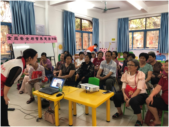 老师通过图片展示、互动讲解、有奖问答的形式向在座的长者居民介绍食品安全知识以及如何通过选取合适食物增强营养、哪些食物更好防治及减轻常见慢性病的进展发生等。居民们听得非常投入,提出很多日常饮食的疑惑,老师一一作出解答分析,居民纷纷表示收获很多。