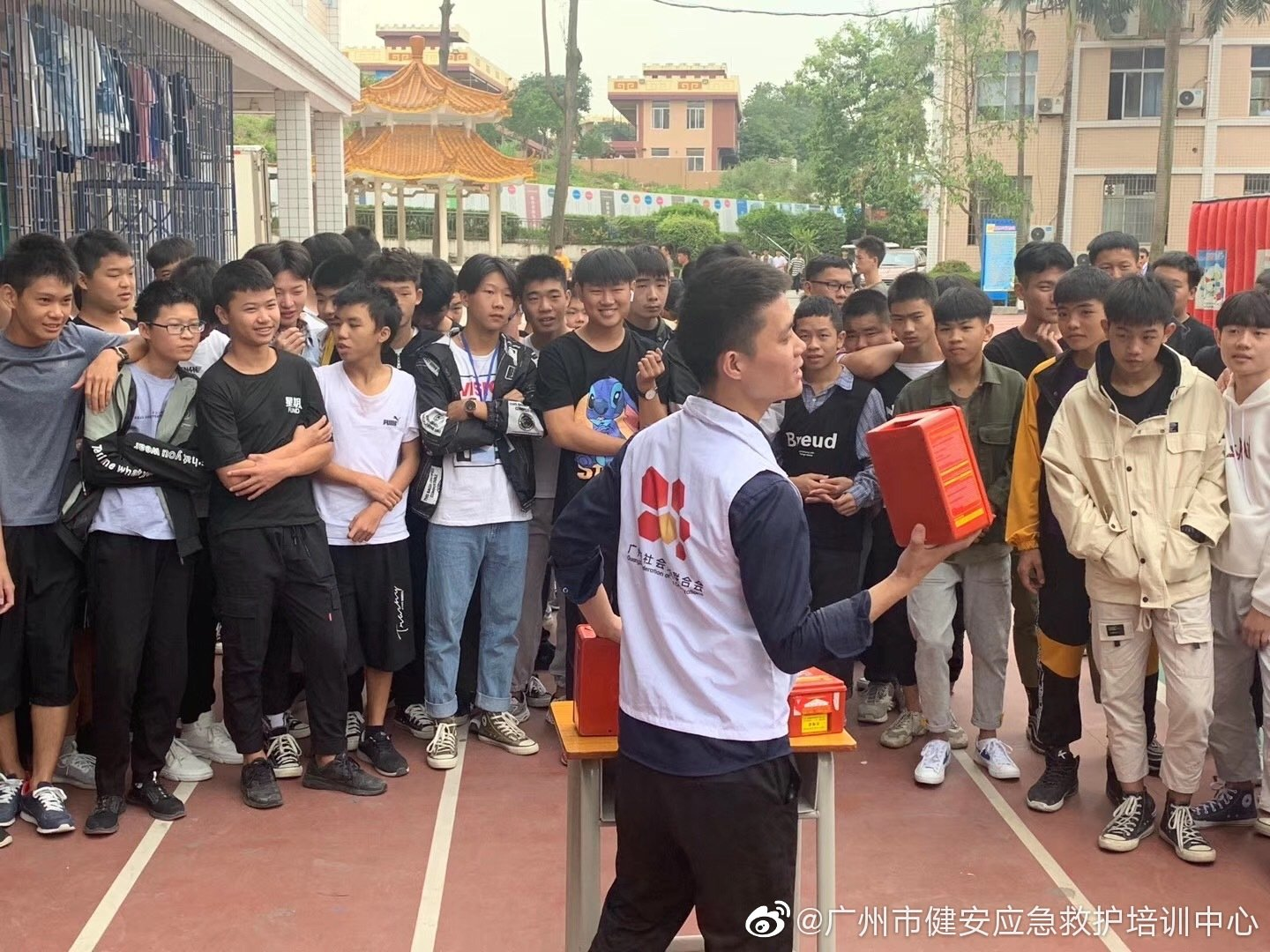 为进一步加强安全生产应急管理工作,不断提高街道、社区、学校等单位安全事故 应急处置能力,通过组织校内师生开展疏散演练、企业安全生产管理人员观摩体验消防应急逃生避险方法,保证在紧急情况下及时疏散,顺利逃生,进一步完善街道、社区、 学校及相关部门应急管理体系,不断拓展防灾减灾救灾宣传培训社会覆盖面,为共同打造平安社会助力,健安培训在2019年10月31日联合珠吉街道、广州市社会组织联合会,广东工业制造技工学校的全校师生,成功举办广州市社区防灾减灾巡回宣传教育和演练活动(天河区专场)。