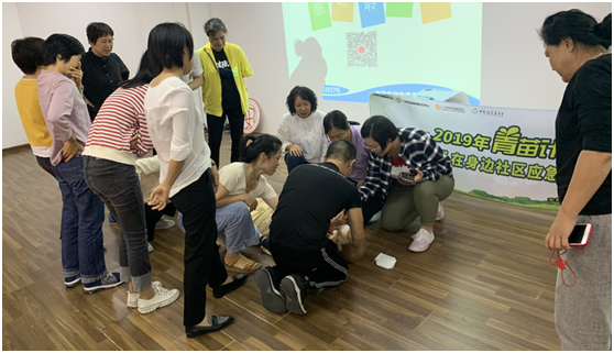 由广州市志愿者协会主办,健安培训实施开展的《党群共融,“救”在身边项目》于2019年11月7日下午进行到第六场,活动开始时先有老师通过视频、案例、图片等讲解日常居家安全意外伤害知识要点,接着演示出现意外伤害时如何应急与救护,接着老师通过案例模拟出现意外场景,由参与者实施应急救护的操作,救护结束后由参与者发表意见,通过这样的模式不仅增强参与者实操能力更锻炼其救护思维。