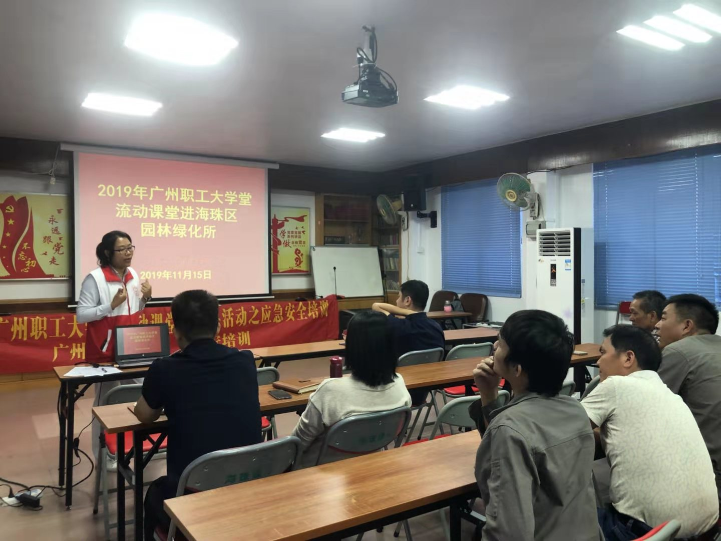 为进一步提升职工应急救护知识,关爱和保障职工和家人健康平安,2019年11月15日下午,健安培训的老师来到海珠区绿化所,为职工讲解了一堂关于健康养生的课程,此次课程约有20名职工参与。