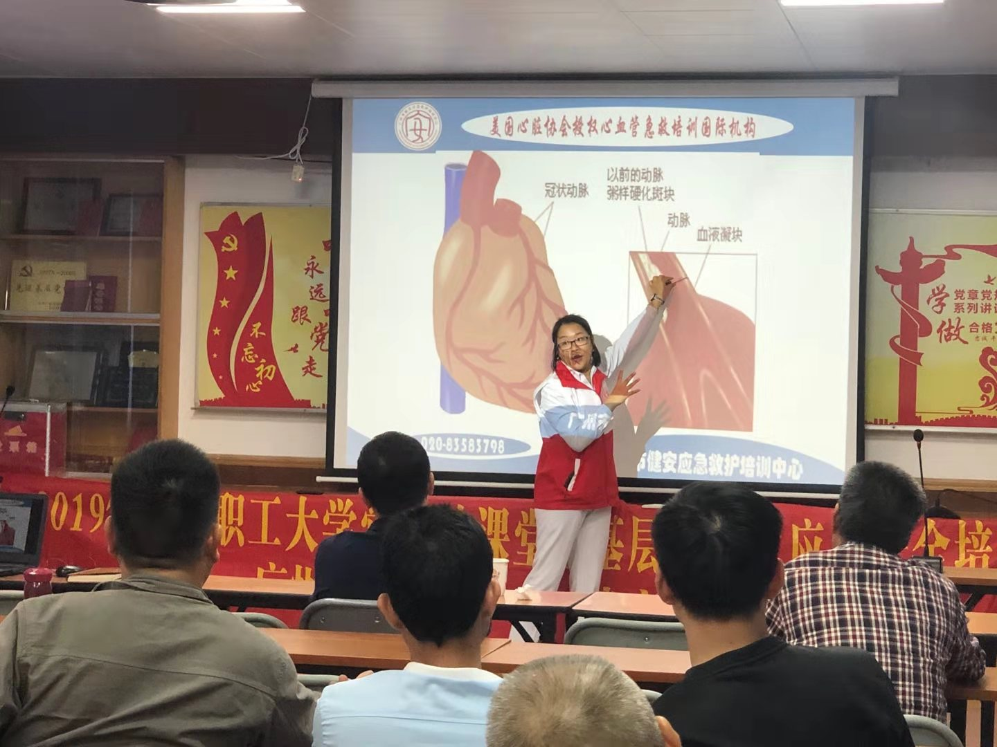 为进一步提升职工应急救护知识,关爱和保障职工和家人健康平安,2019年11月15日下午,健安培训的老师来到海珠区绿化所,为职工讲解了一堂关于健康养生的课程,此次课程约有20名职工参与。