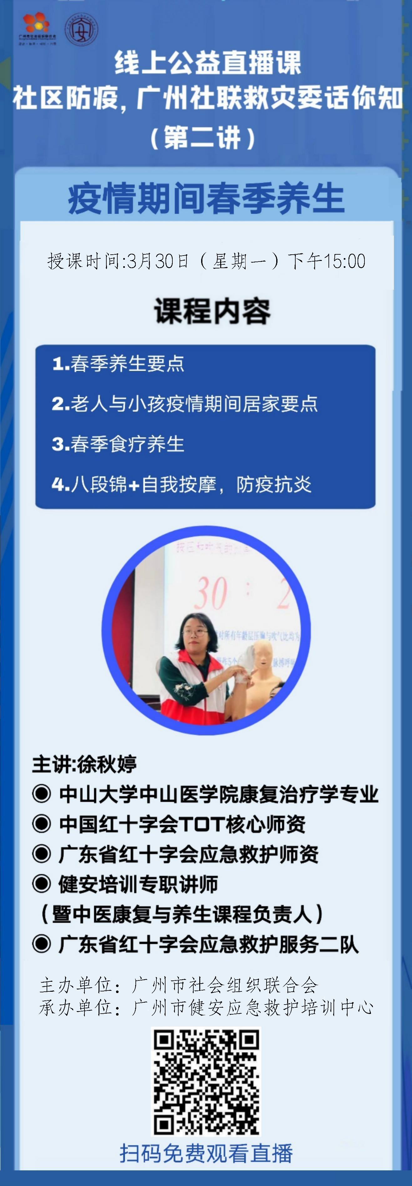 【今晚八点线上课程】社区防疫线上公益公开课程,广州社联救灾委话你知之疫情期间春季养生