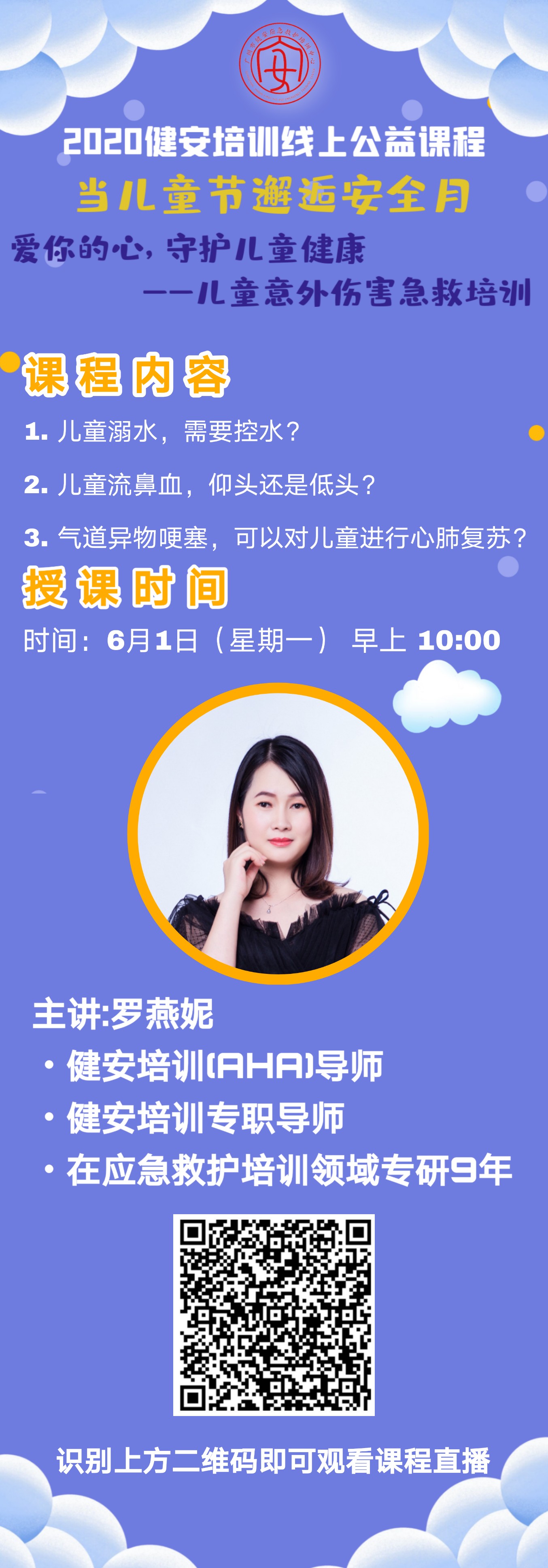 【6月1日星期一上午十点课程预告】2020健安公益线上课程,当儿童节邂逅安全月,爱你的心,守护儿童健康--儿童意外伤害急救培训