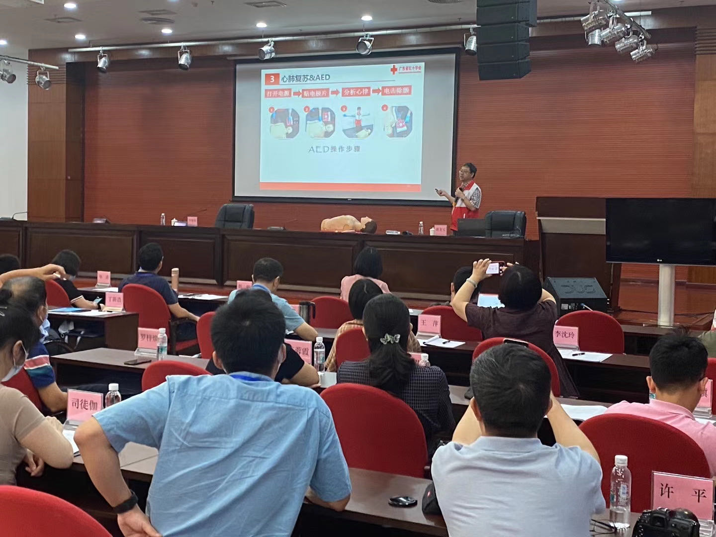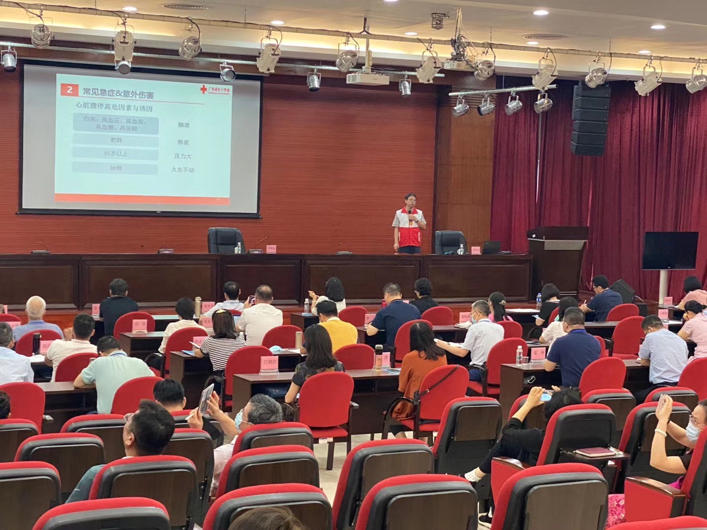7月8日下午,由广东省直机关工委和广东省红十字会联合主办,2020年“红十字送健康”行动——红十字应急救护知识技能普及活动在广东省社会主义学院举办,共100名县处级干部和职工代表参加了讲座培训。