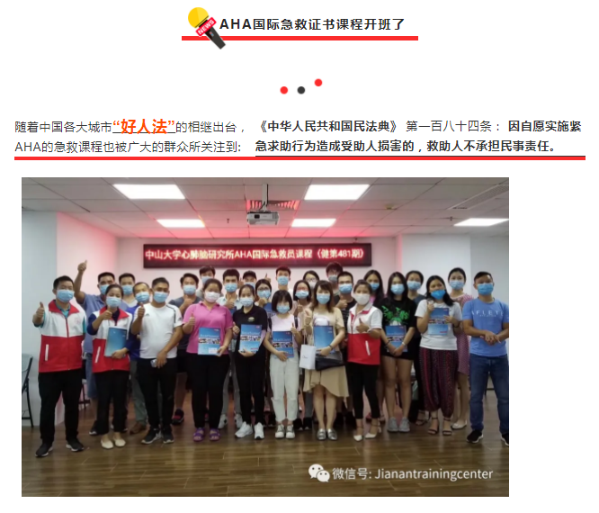 (AHA)主任导师拍了一拍你,中山大学心肺脑复苏研究所(AHA)国际急救BLS/FIRST AID证书培训课程开班啦!