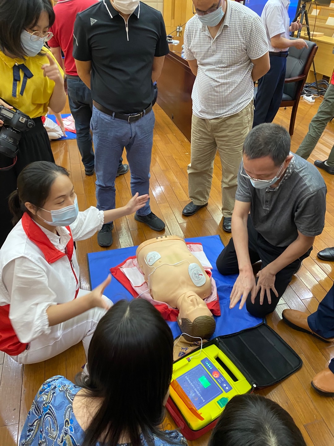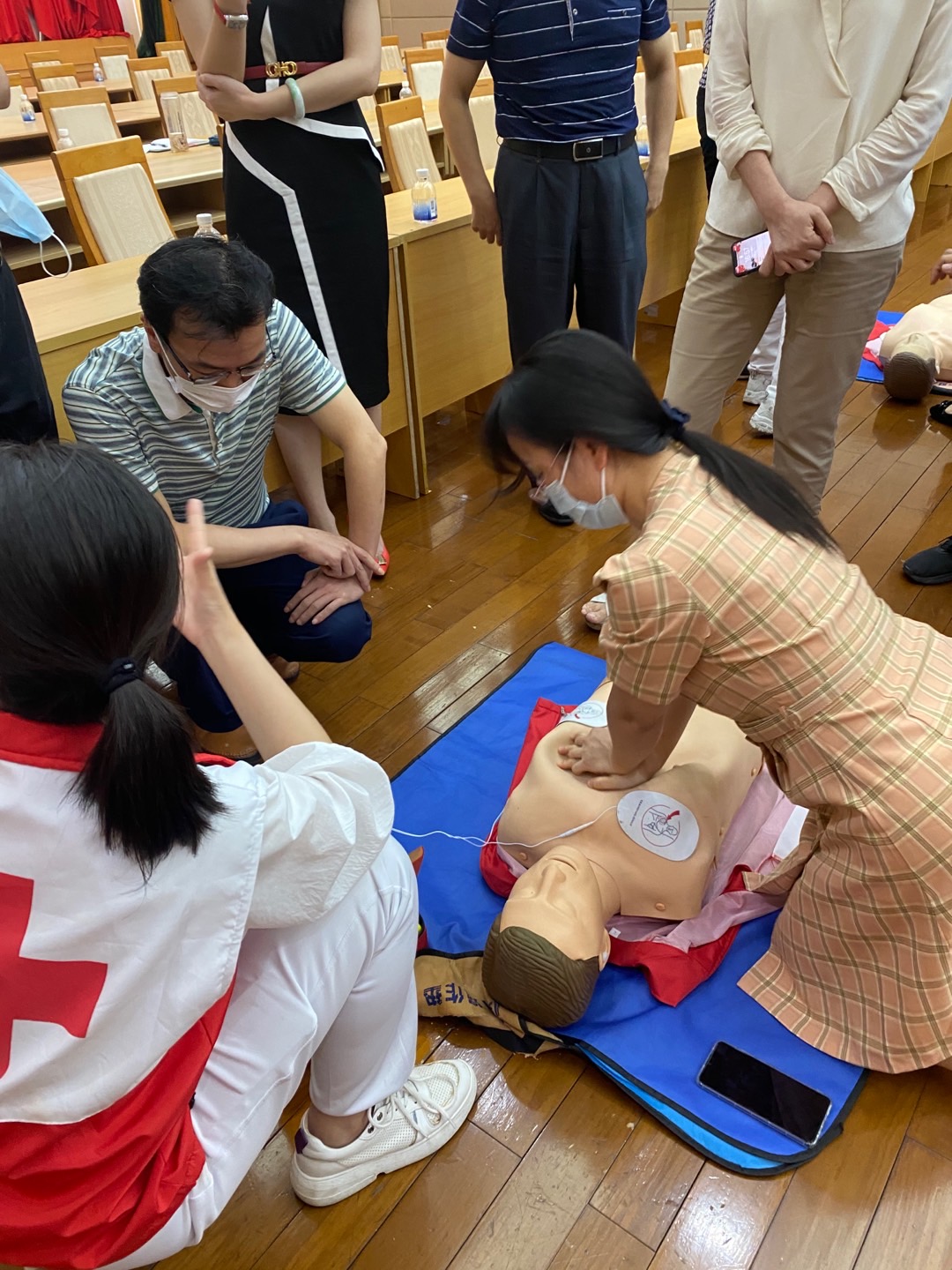 此次培训由广东省红十字会志愿者中山大学孙逸仙纪念医院方向韶教授进行理论讲解。本期“红十字送健康”行动的主要内容包括红十字运动、常见急症和意外伤害的预防及现场急救、现场心肺复苏术、AED使用、传染病防控相关知识、突发事件的防灾避险等,以提高参与者第一时间应对各种突发意外等能力,为挽救病人生命争取时间和机会。 理论讲授后由红十字志愿者团队分小组指导学员使用成人模拟人、婴儿模拟人、AED训练机等教学器械进行各项急救技能实操。学员们课后纷纷积极主动地参与实操学习,现场气氛热烈,党员干部们都觉得课程非常实用,接地气。