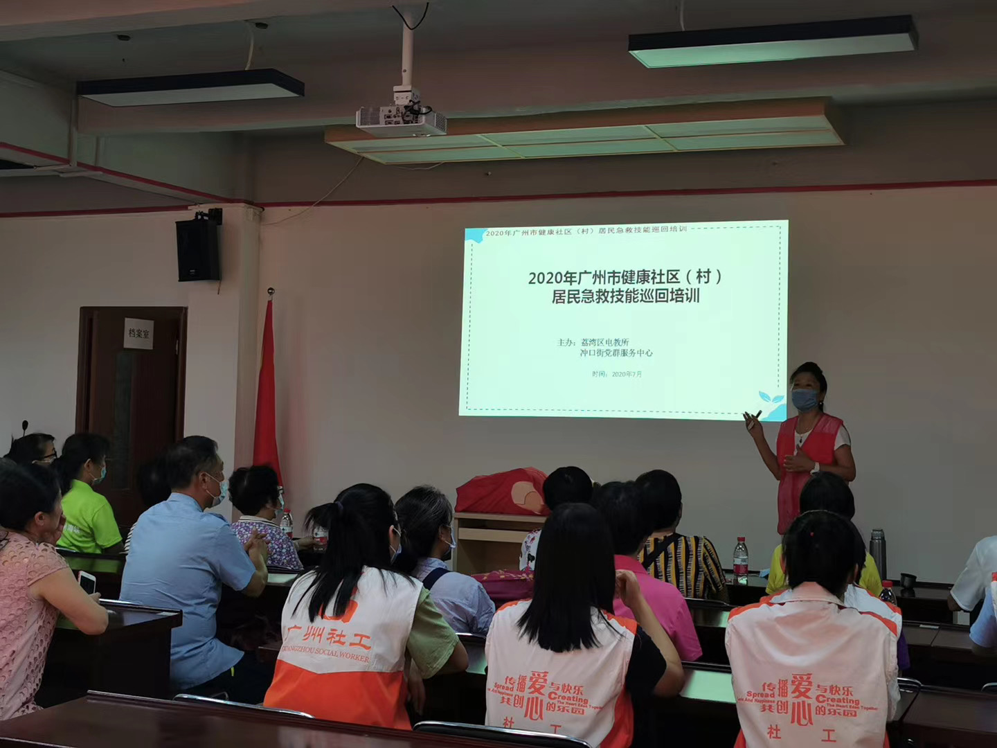 7月20日在荔湾区杏花社区和逸彩社区开展由广州市卫生健康宣传教育中心主办的健康社区(村)居民急救技能巡回培训,超过60名群众参加。