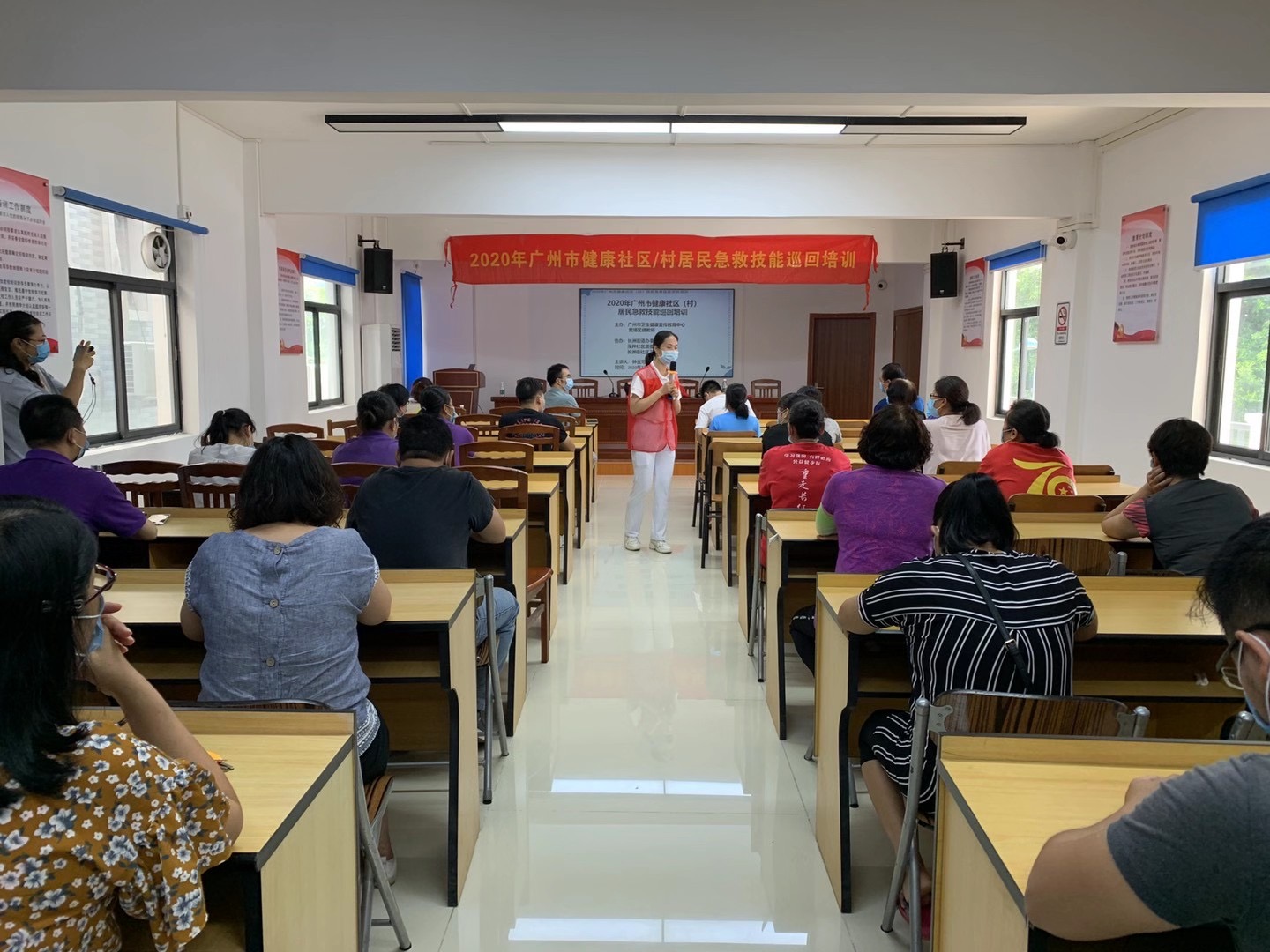 黄埔区深井社区的居民,认真听取理论课程后,争相体验,老师在旁手把手,一对一教导,基本达到人人过堂,人人过关,培训效果明显。