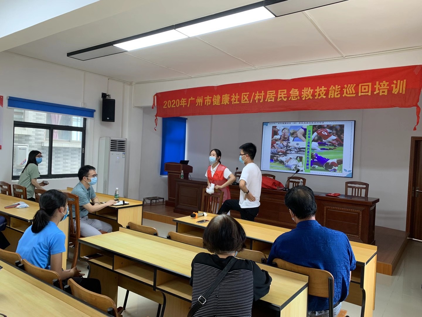 通过风趣幽默的语言和生动灵活的授课手段,对现场心肺复苏术、和传染病防控相关知识等知识进行了理论讲解,让居民在热烈的互动中思考、学习,以掌握现场急救的基本技能,增强应对意外伤害和突发灾难的处置能力。