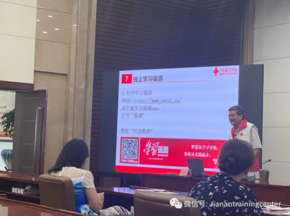此次培训由广东省红十字会志愿者中山医科大学附属第一医院李玉杰教授进行理论讲解,通过案例及知识点分析,强调现场救护的重要性以及黄金时间、白金时间概念。