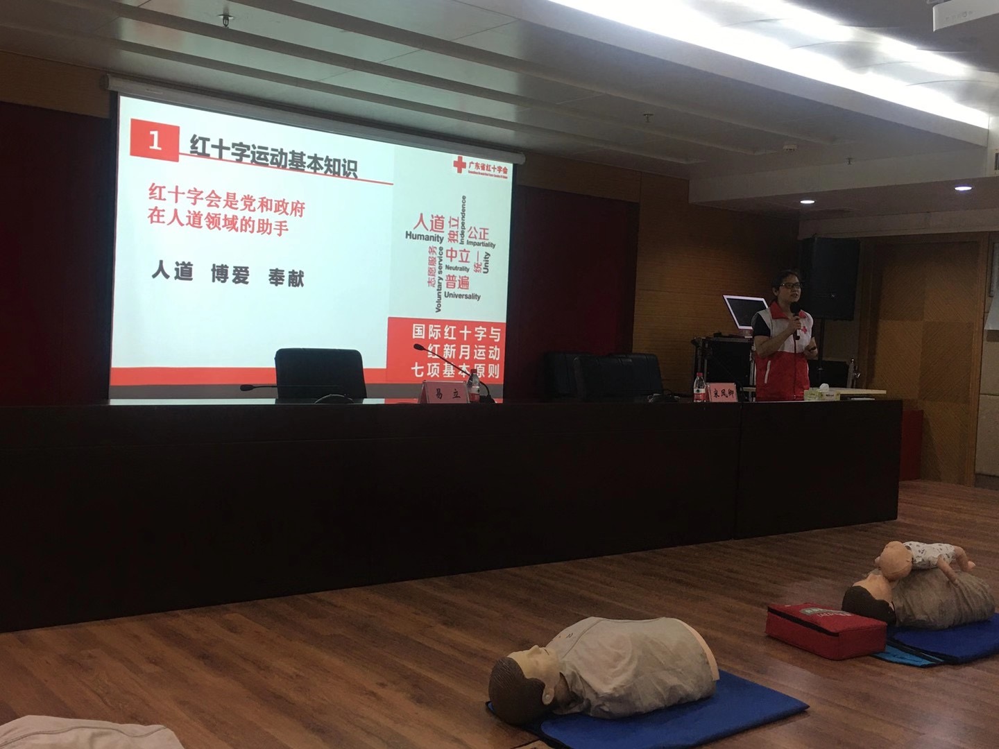 培训由广东省红十字会志愿者中山大学孙逸仙纪念医院宋凤卿教授生动的讲授,内容涵盖常见意外急症、心肺复苏、疫情期间个人防护措施等内容。