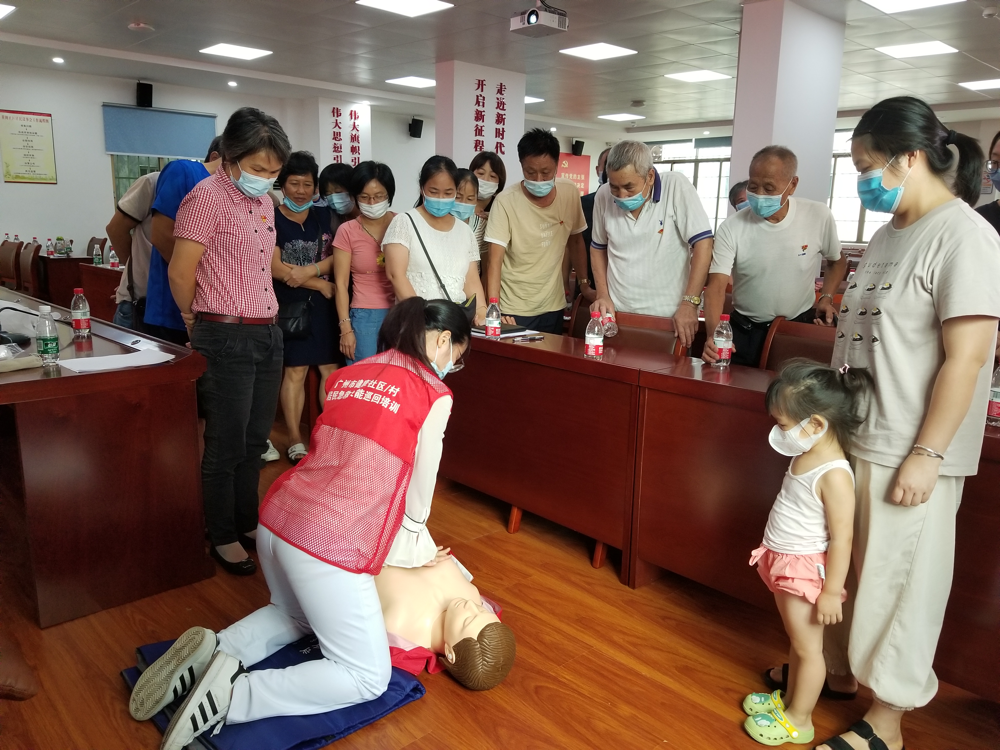 7月31日,南沙区黄阁社区、天河区美林湖畔社区超过60名居民聚在一堂学习急救知识和技能。这是由广州市卫生健康宣传教育中心主办的健康社区/村居民急救技能巡回培训。