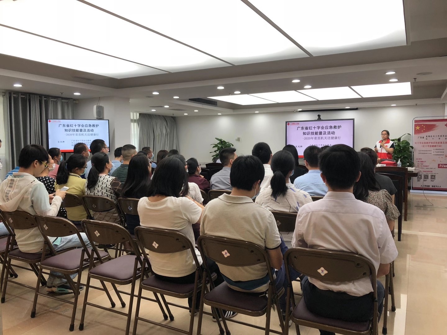 为增强党员干部职工自救互救意识和技能,在处置突发事件时,能及时、正确地实施自救互救,最大限度地降低人员伤亡,在人民群众中树立党员干部的良好形象,8月7日下午,由广东省直机关工委和广东省红十字会联合主办,2020年“红十字送健康”行动——红十字应急救护知识技能普及活动在广东省医疗保障局举办,约50名机关党员干部职工代表参加了讲座。