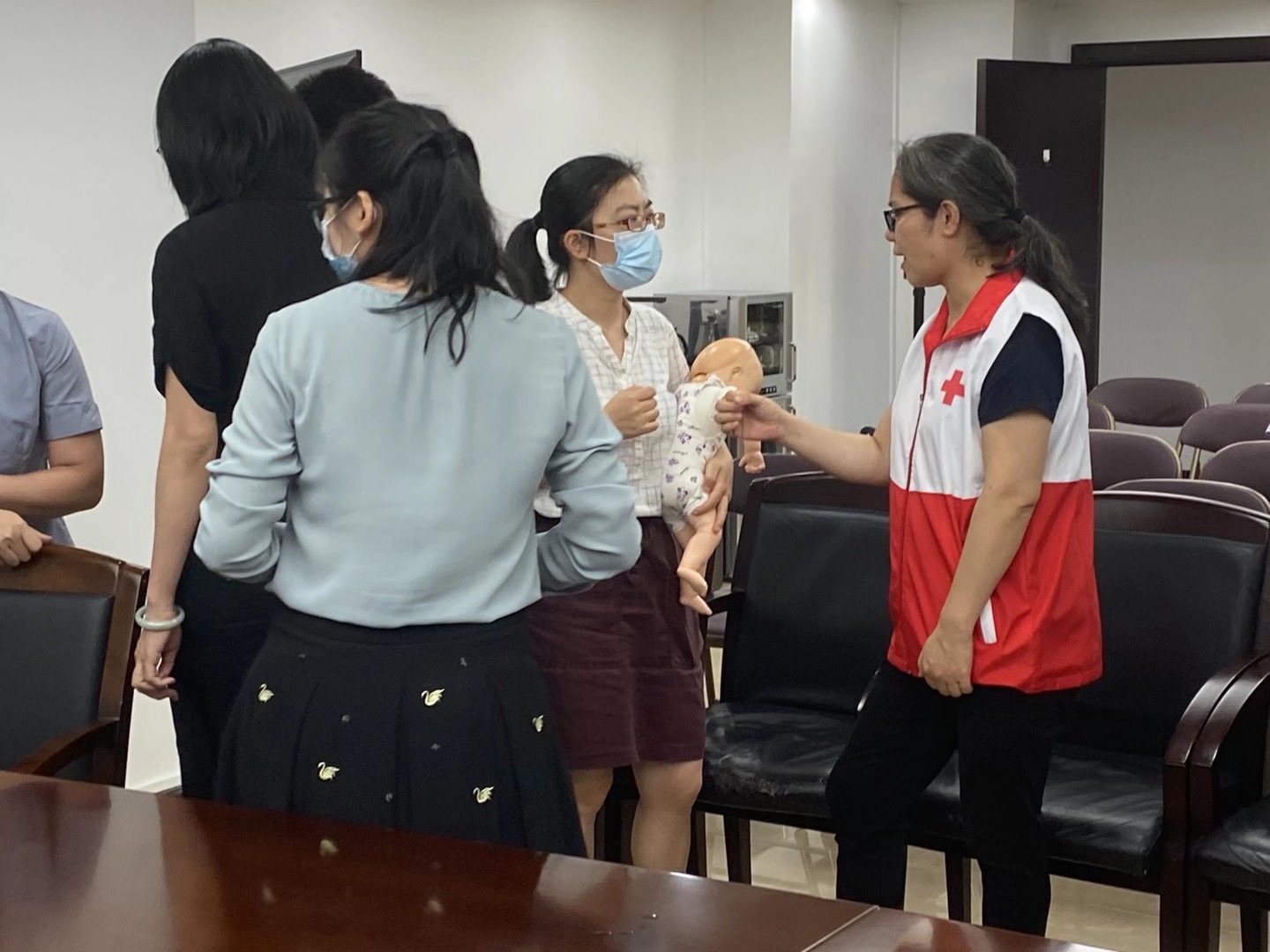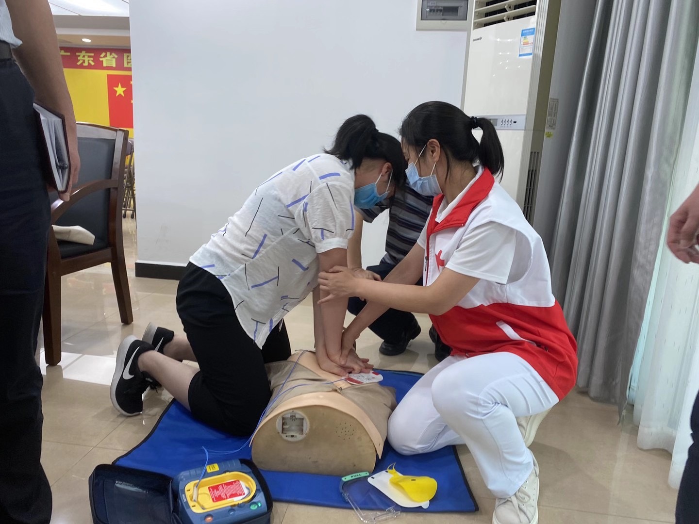 培训由广东省红十字会志愿者中山大学孙逸仙纪念医院宋凤卿教授生动的讲授,内容涵盖常见意外急症、心肺复苏、疫情期间个人防护措施等内容。现场演示了心肺复苏的手腕姿势、按压位置、操作步骤以及人工呼吸等关键技巧,加深了大家对心肺复苏知识的了解和掌握。最后现场人员争先进行模拟训练。