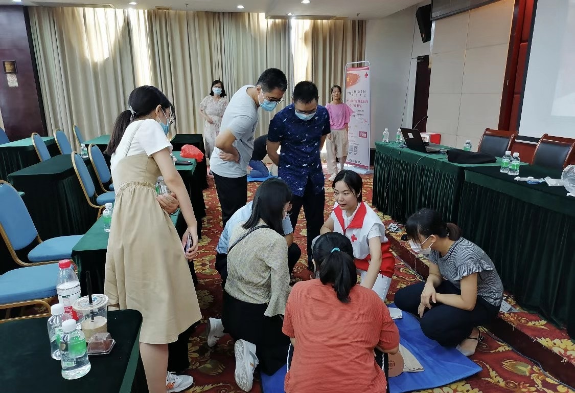 广东省红十字会志愿者团队还通过模拟人示教让学员们亲自体验和掌握现场急救的基本技能,增强应对意外伤害和突发灾难的处置能力。