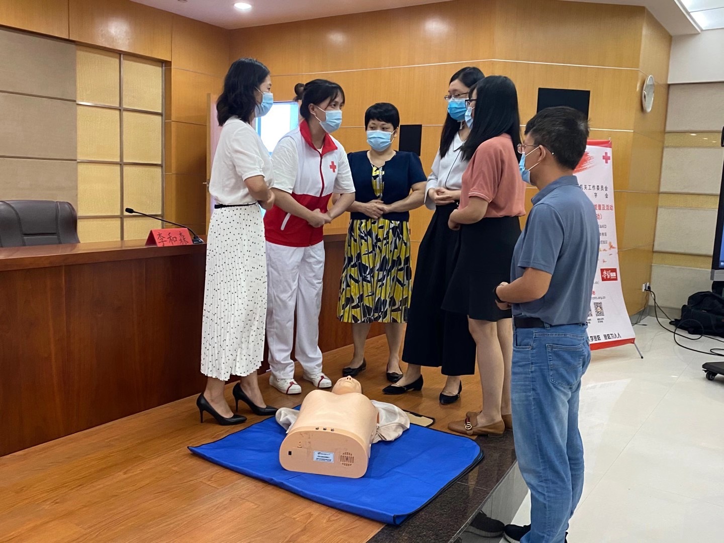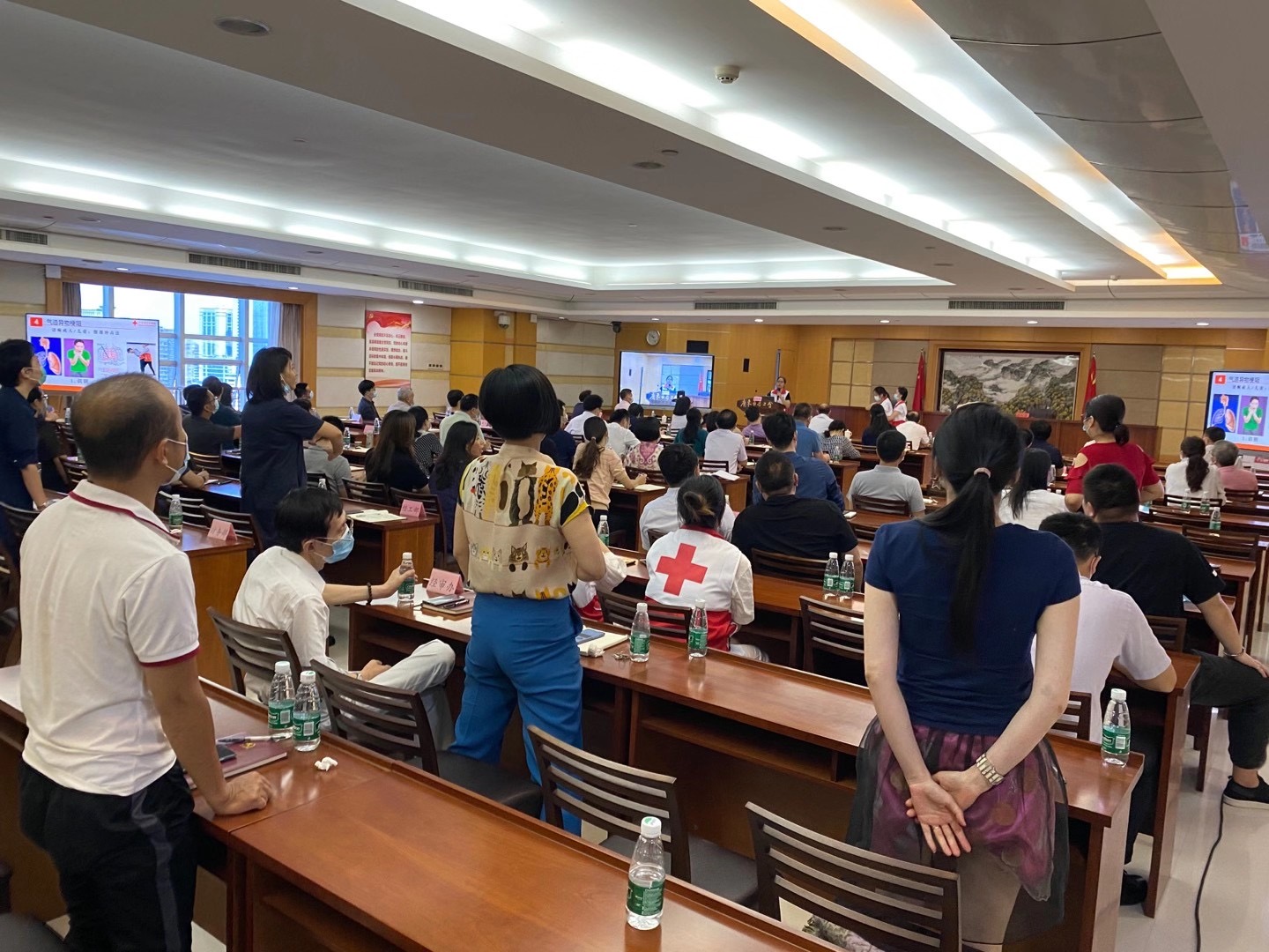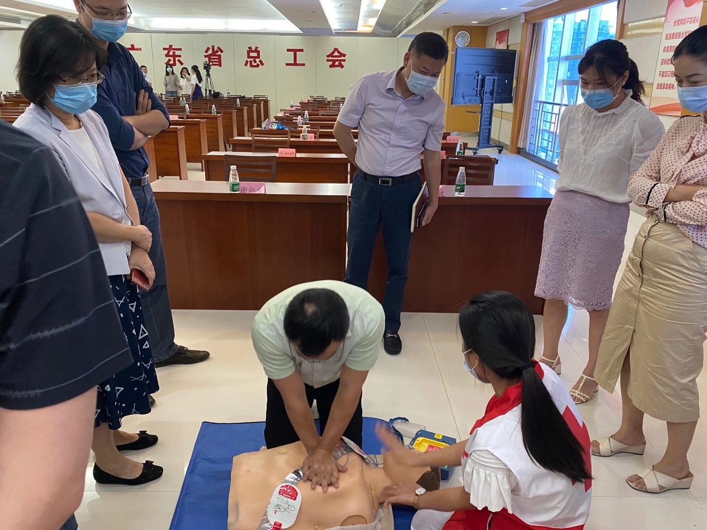为深入贯彻落实习近平总书记关于“弘扬生命至上、安全第一”、“没有全民健康,就没有全面小康”的重要指示精神,8月17日上午,由广东省直机关工委和广东省红十字会联合主办,2020年“红十字送健康”行动——红十字应急救护知识技能普及活动在广东省总工会举办,约80名机关党员干部职工代表参加了讲座培训。