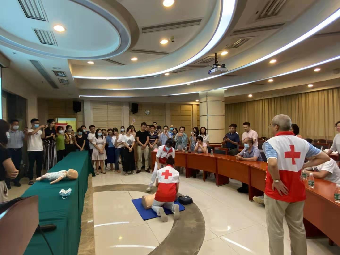 此次培训由广东省红十字会志愿者中山大学附属第三医院张永标教授进行理论讲解,张教授运用理论与实操演示相结合的方式围绕红十字运动、常见急症和意外伤害的预防、现场心肺复苏、AED的使用、传染病防控等相关知识进行现场教学。