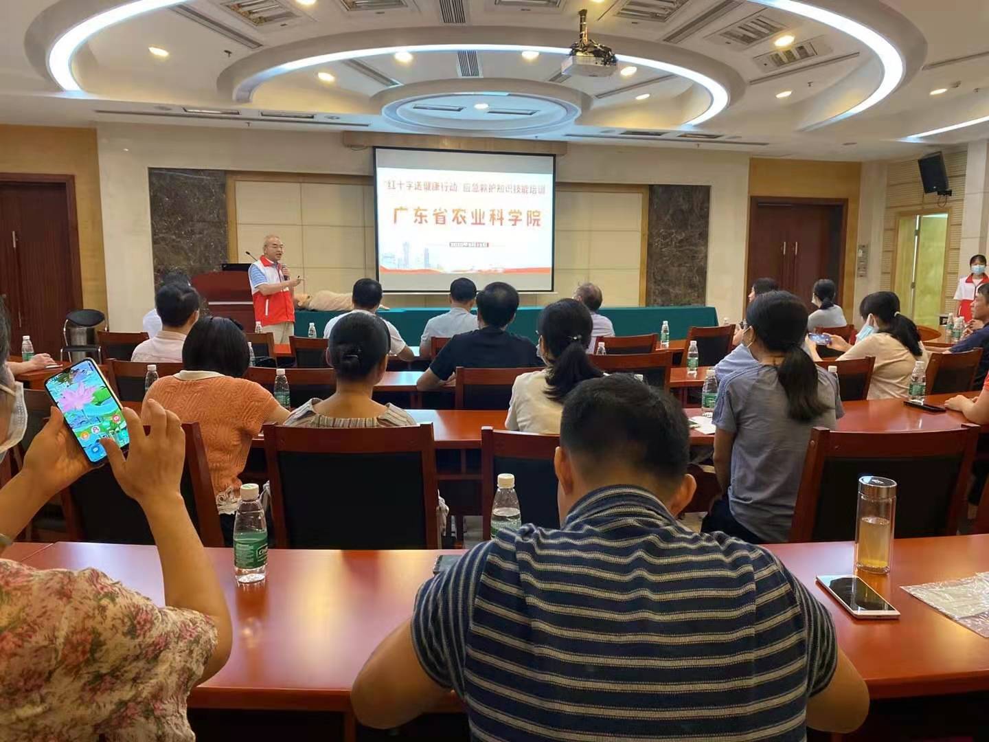 为深入贯彻落实习近平总书记提出的“人民至上,生命至上”的重要指示精神,加强党员干部职工的安全防范意识,掌握基本的应急救护知识与技能,在意外伤害发生时能够及时有效地自救互救。9月15日下午,由广东省直机关工委和广东省红十字会联合主办2020年“红十字送健康”行动---红十字应急救护知识技能普及活动走进广东省农业科学院,活动当天,约有机关党员干部职工50人参加了本次讲座培训。