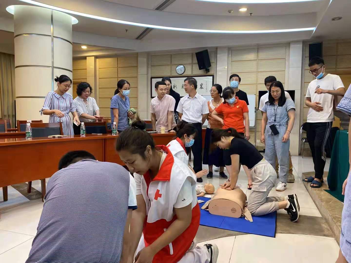 在理论讲授后由志愿者演示了现场急救操作的整个流程,培训现场每位党员干部职工积极热情地和志愿者交流探讨课堂上的知识,纷纷表示培训内容实用,将通过“学习强国”学习平台继续学习掌握应急救护知识技能,保护身边人和自己的生命健康!