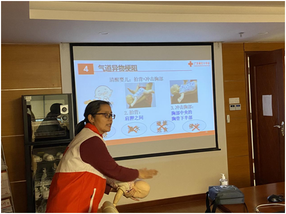 培训内容主要包括疫情期间个人防护措施、心肺复苏术、创伤急救、意外伤害处理等应急救护知识。培训中,广东省红十字会志愿者中山大学孙逸仙纪念医院宋凤卿教授用专业救护知识结合医院工作的救护案例,加上精彩有趣的互动,让学员们对应急救护知识有初步了解,也认识到学习应急救护知识的重要性。