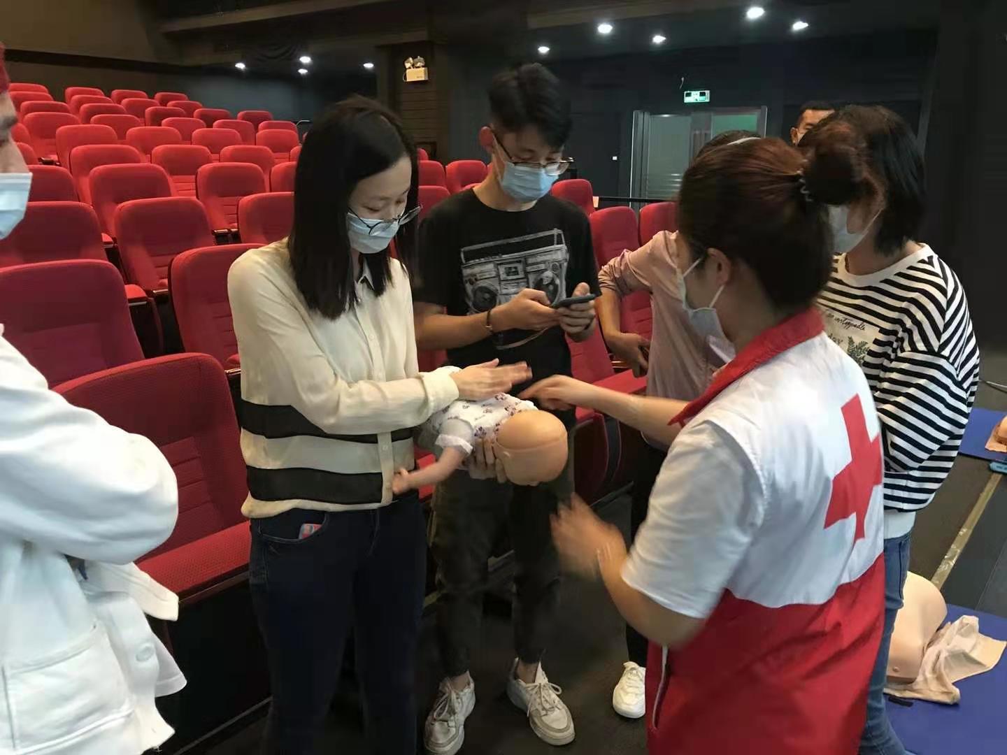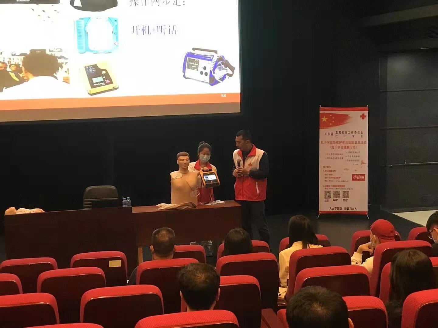 此次培训由广东省红十字会志愿者三元里街社区卫生服务中心全科医疗部主任李永新教授进行理论讲解,李教授运用理论与实操演示相结合的方式围绕红十字运动、常见急症和意外伤害的预防、现场心肺复苏、AED的使用、传染病防控等相关知识进行现场教学。