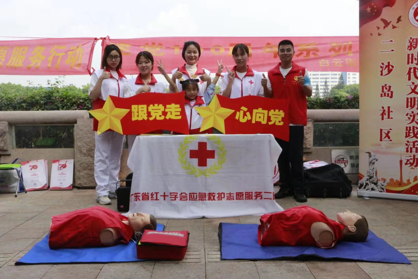 服务二队联合港务紧贴“党史和广州港航宣传”展台,广东省红十字会应急救护服务队的“白衣天使”们正在热乎的忙着,他们正在向公众普及急救知识、展现急救技能呢!
