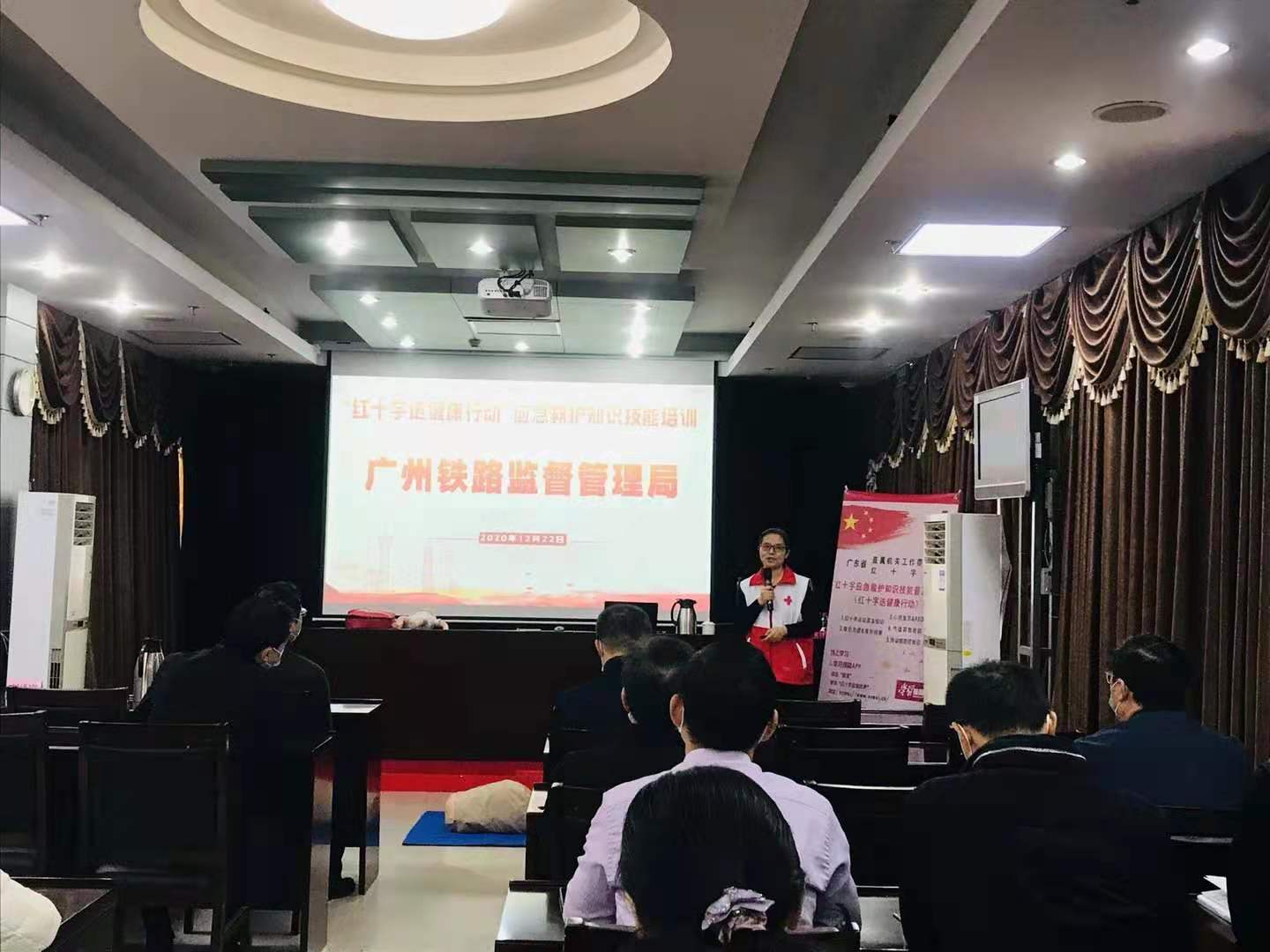 12月22日下午,由广东省直机关工委和广东省红十字会联合主办,2020年“红十字送健康”行动——红十字应急救护知识技能普及活动在广州铁路监督管理局开展,加大应急救护知识宣传力度,普及应急救护知识,提高机关职工应急救护能力和水平,约30名机关党员干部职工参加。
