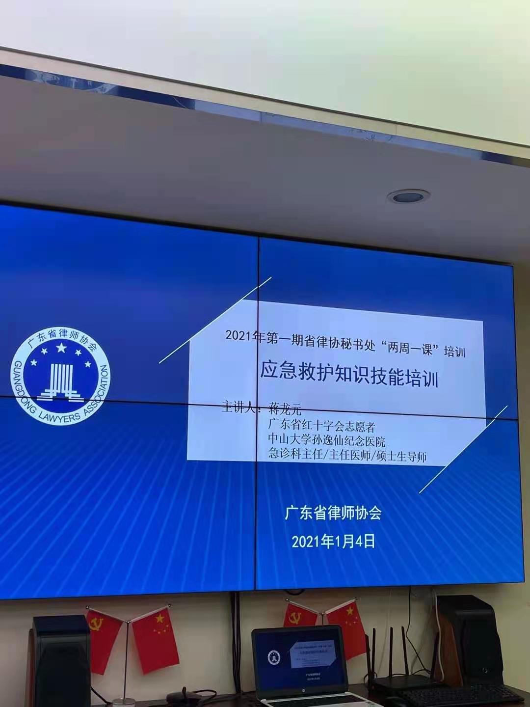 目前,基于律师工作竞争性、挑战性强的特点,考虑到律师行业加班加点是常态,身体健康面临着威胁的现状。为进一步丰富省律师协会机关人员、党员干部文化生活,促进身心健康, 1月4日下午,由广东省直机关工委和广东省红十字会联合主办,2021年“红十字送健康”行动——红十字应急救护知识技能普及活动来到了广东省律师协会,这是新年第一课!参加活动约50人。省律协徐敏彪秘书长带头领学。